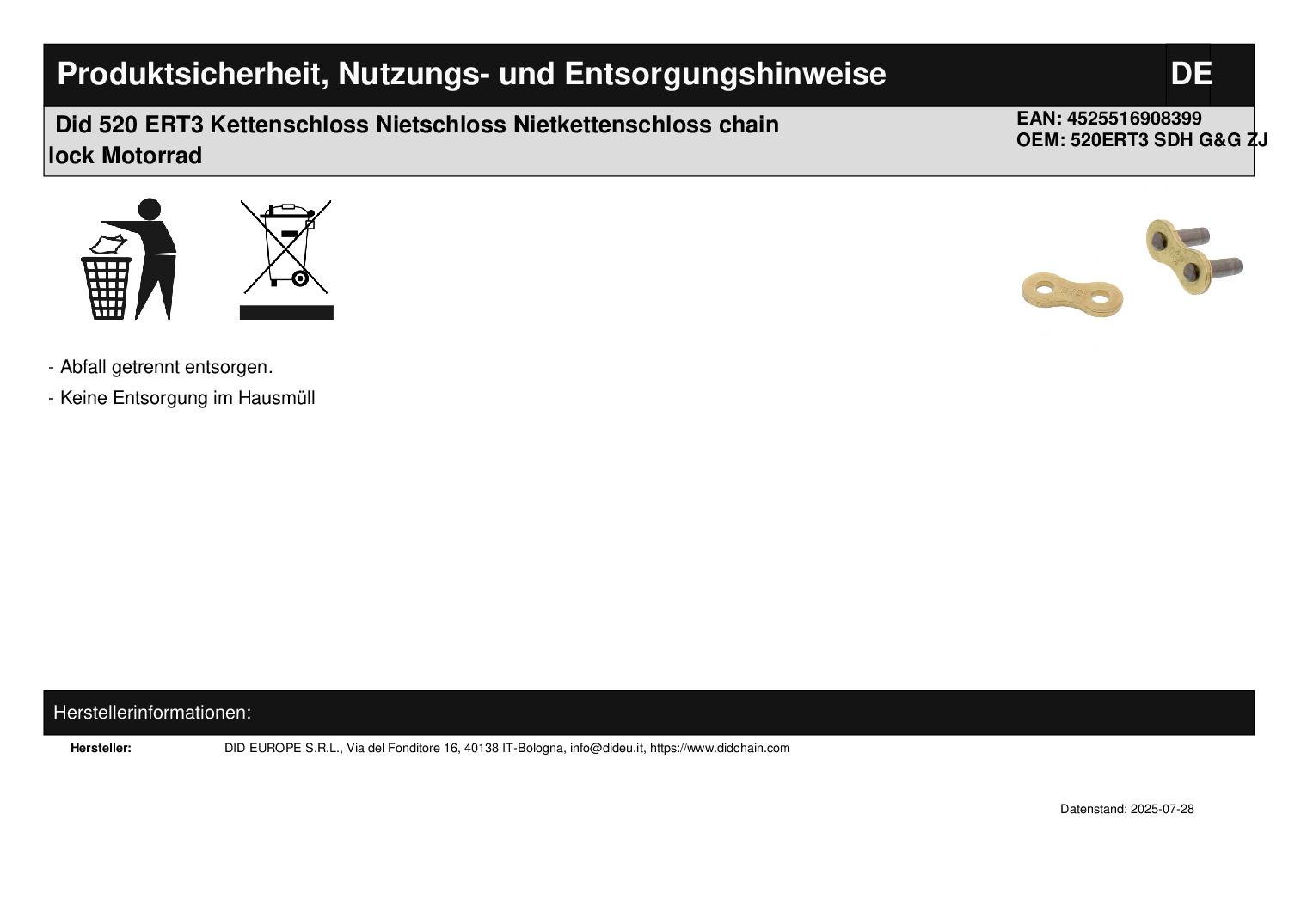 In dieser Auktion gibt es folgenden Artikel zu kaufen: Kettenschloss (ähnlich Foto) Typ: 520ERT3 Bitte Kettentyp vergleichen! Lieferumfang: siehe Foto Artikelzustand: neu