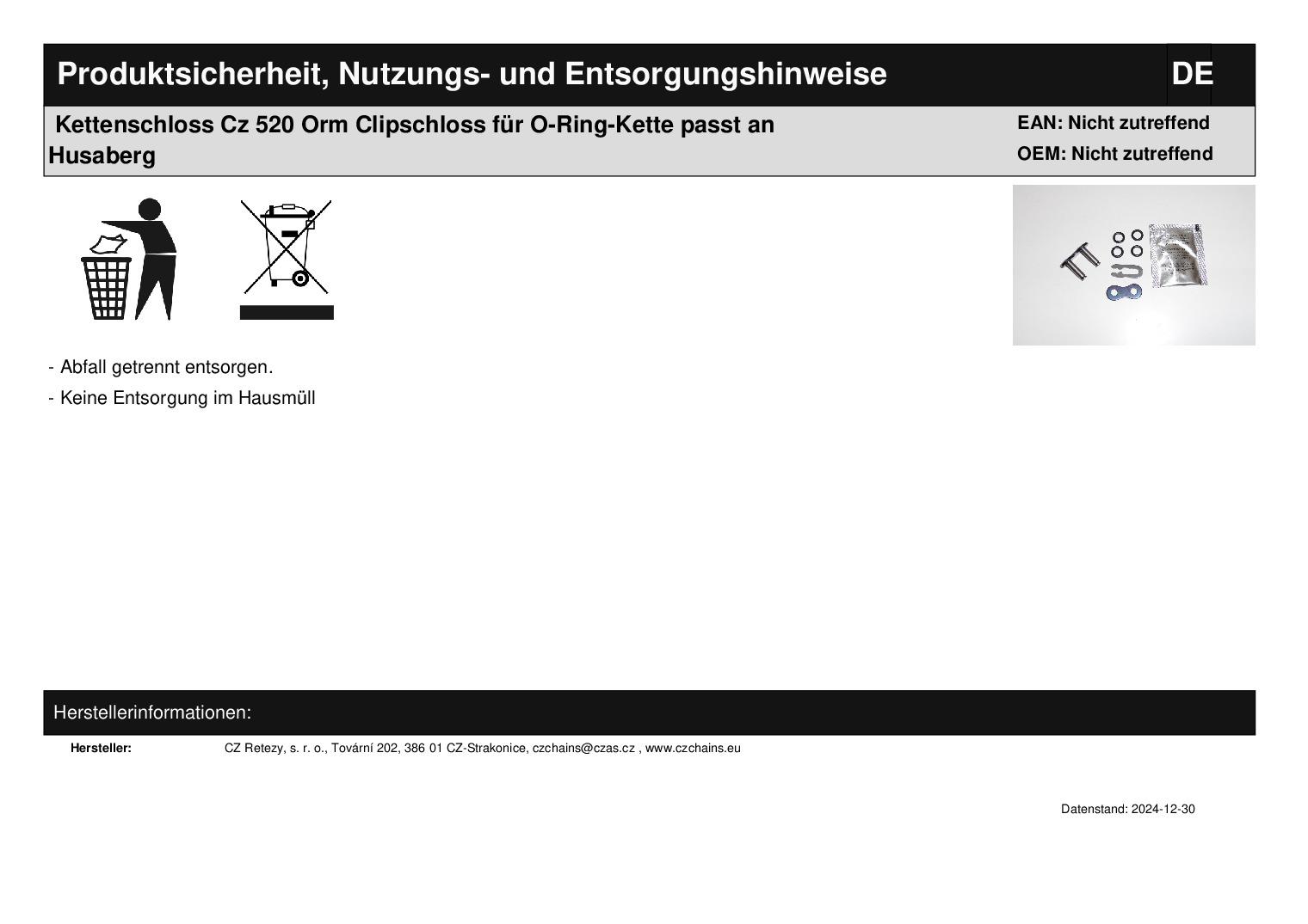 In dieser Auktion gibt es folgenden Artikel zu kaufen: Kettenschloss für O-Ring-Kette (siehe Foto) Typ: Cz 520 ORM Lieferumfang: 1 Stück Artikelzustand: neu Bei Unklarheiten oder Fragen bitte erst E-Mail schreiben.