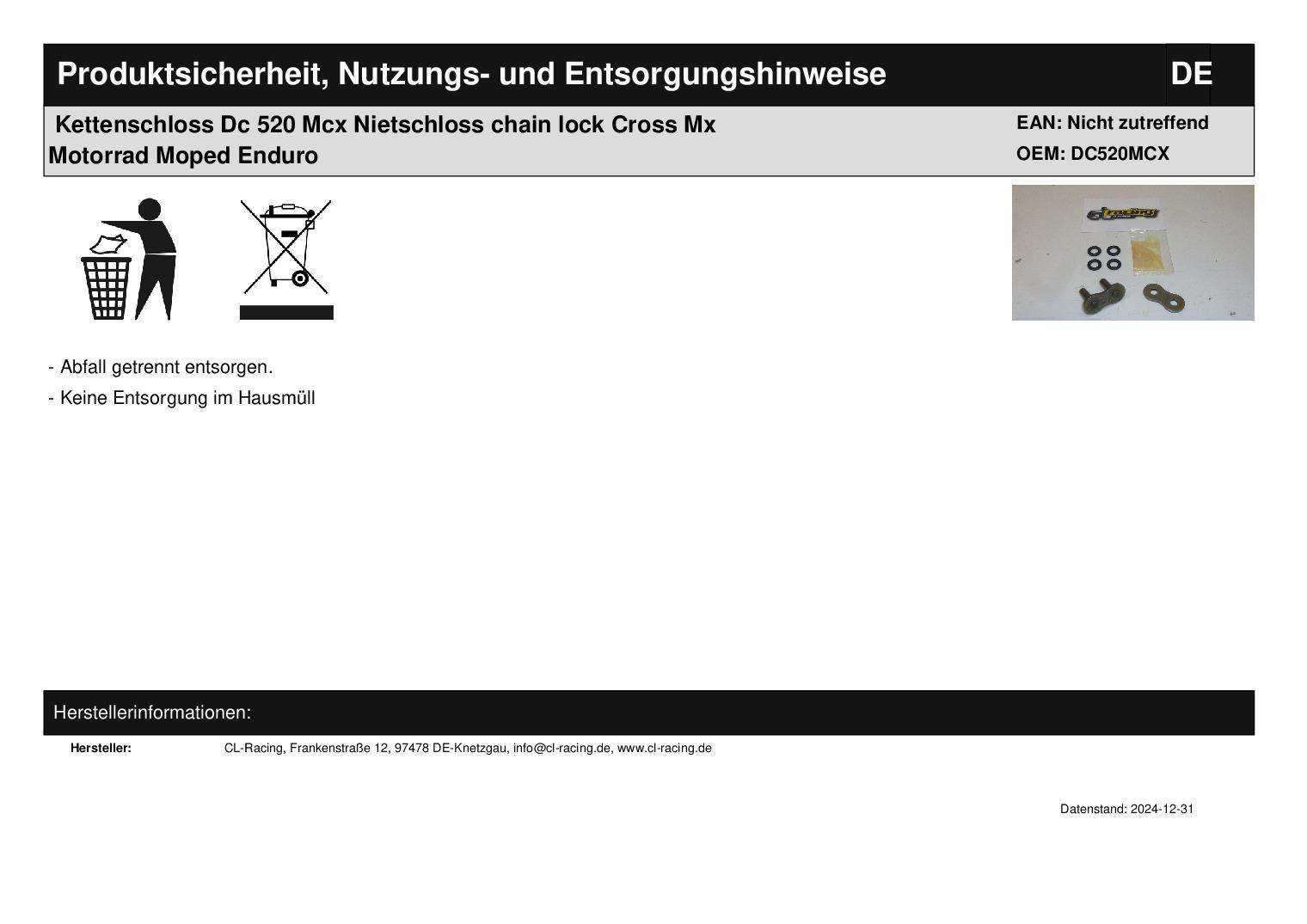 Kettenschloss Dc 520 Mcx Nietschloss chain lock Cross Mx Motorrad Moped Enduro