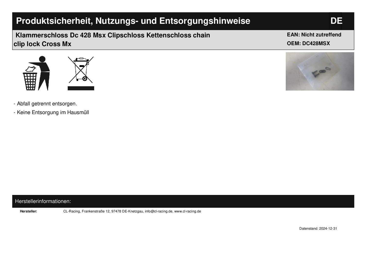 In dieser Auktion gibt es folgenden Artikel zu kaufen: Klammerschloss (siehe Foto) Hersteller: DC Dyna chains Typ: DC 428 MSX Bitte Kettentyp vergleichen! Lieferumfang: siehe Foto Artikelzustand: neu aus Geschäftsauflösung, mit minimalen Lagerspuren; Zustand siehe Foto