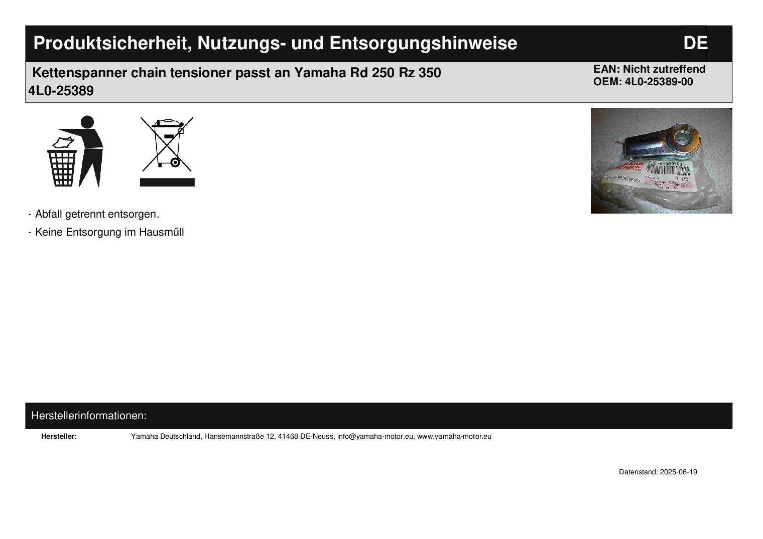 In dieser Auktion gibt es folgenden Artikel zu kaufen: originaler Kettenspanner (siehe Foto) Modell: passend für Yamaha RD 250 LC Bj.: 1984 - 1985 RD 350 LC Bj.: 1984 - 1985 RD 250 YPVS Bj.: 1984 - 1985 RD 350 YPVS Bj.: 1984 - 1985 RZ 350 L/N/NC/NC2RZ 350 Bj.: 1984 - 1985 Lieferumfang: 1 Stück Artikelzustand: neu aus Geschäftsauflösung, mit leichten Lagerspuren; Zustand siehe Foto Bei Unklarheiten oder Fragen bitte erst E-Mail schreiben.