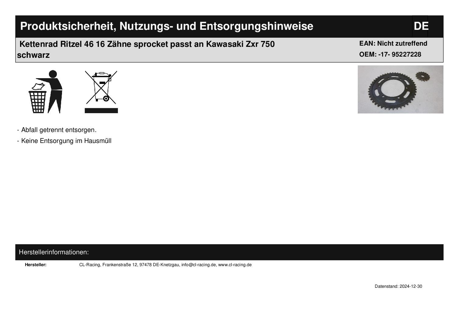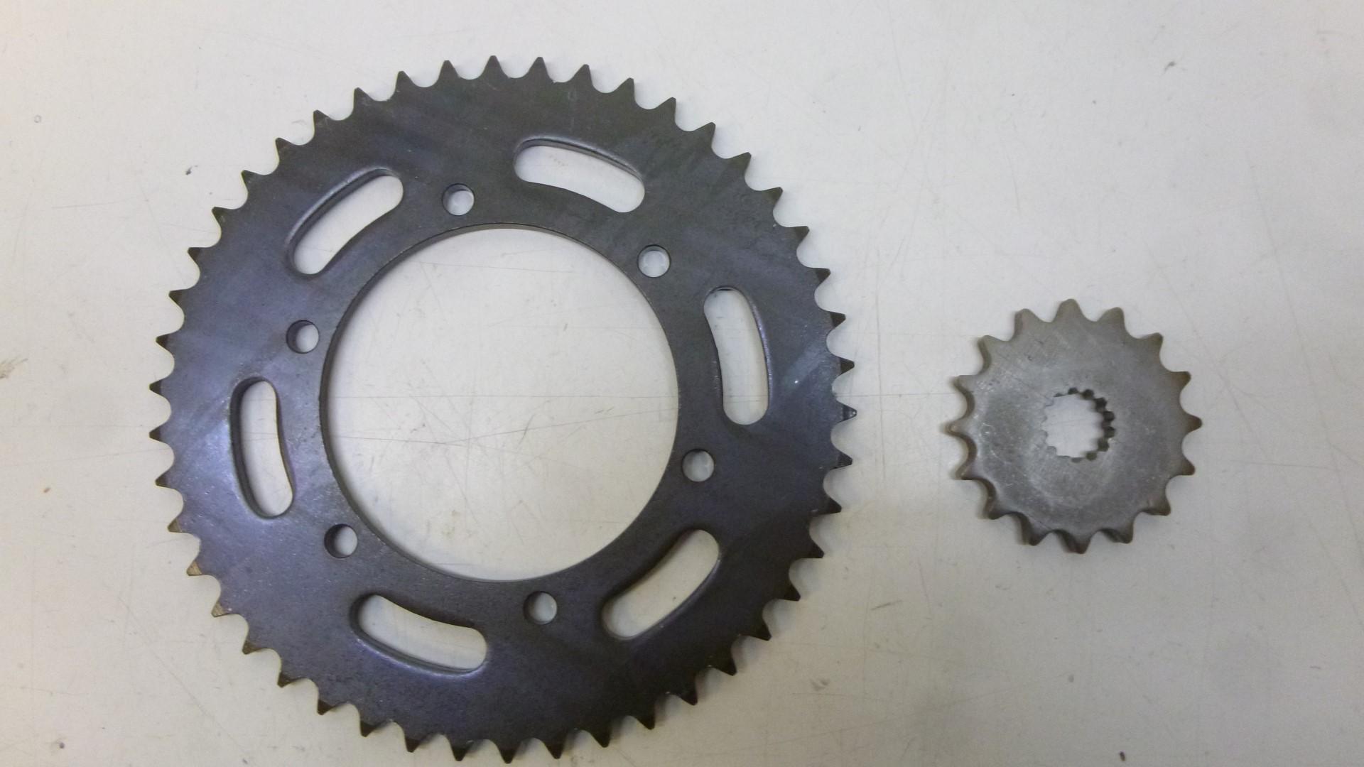 In dieser Auktion gibt es folgenden Artikel zu kaufen: Kettenrad und Ritzel (siehe Foto) Modell: passend für Kawasaki ZXR 750 Bj.: unbekannt Details: