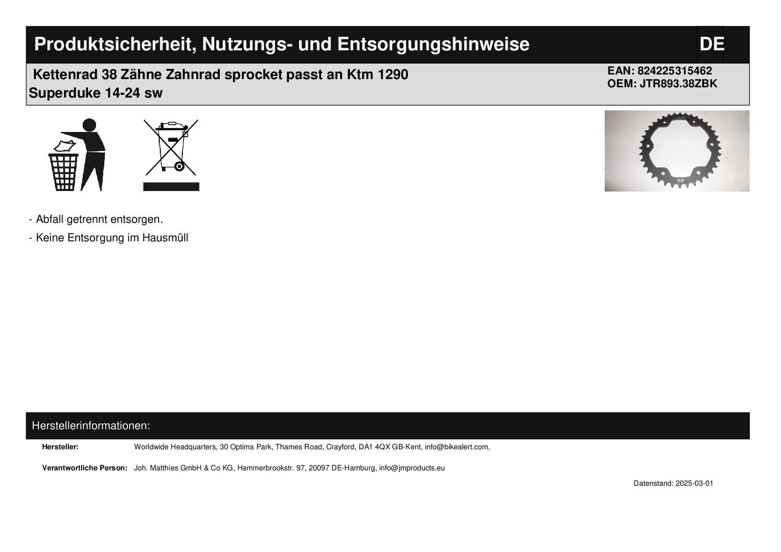 In dieser Auktion gibt es folgenden Artikel zu kaufen: Kettenrad (siehe Foto) Modell: passend für KTM 1290 Superduke Bj.: 2014 - 2024 Brabus 1300 R Bj.: 2022 - 2024 1290 Superduke GT Bj: 2016 - 2024 Details: Zähnezahl: 38 Vor dem Kauf bitte Übersetzung mit Ihrem Fahrzeug vergleichen! Lieferumfang: 1 Stück Artikelzustand: neu