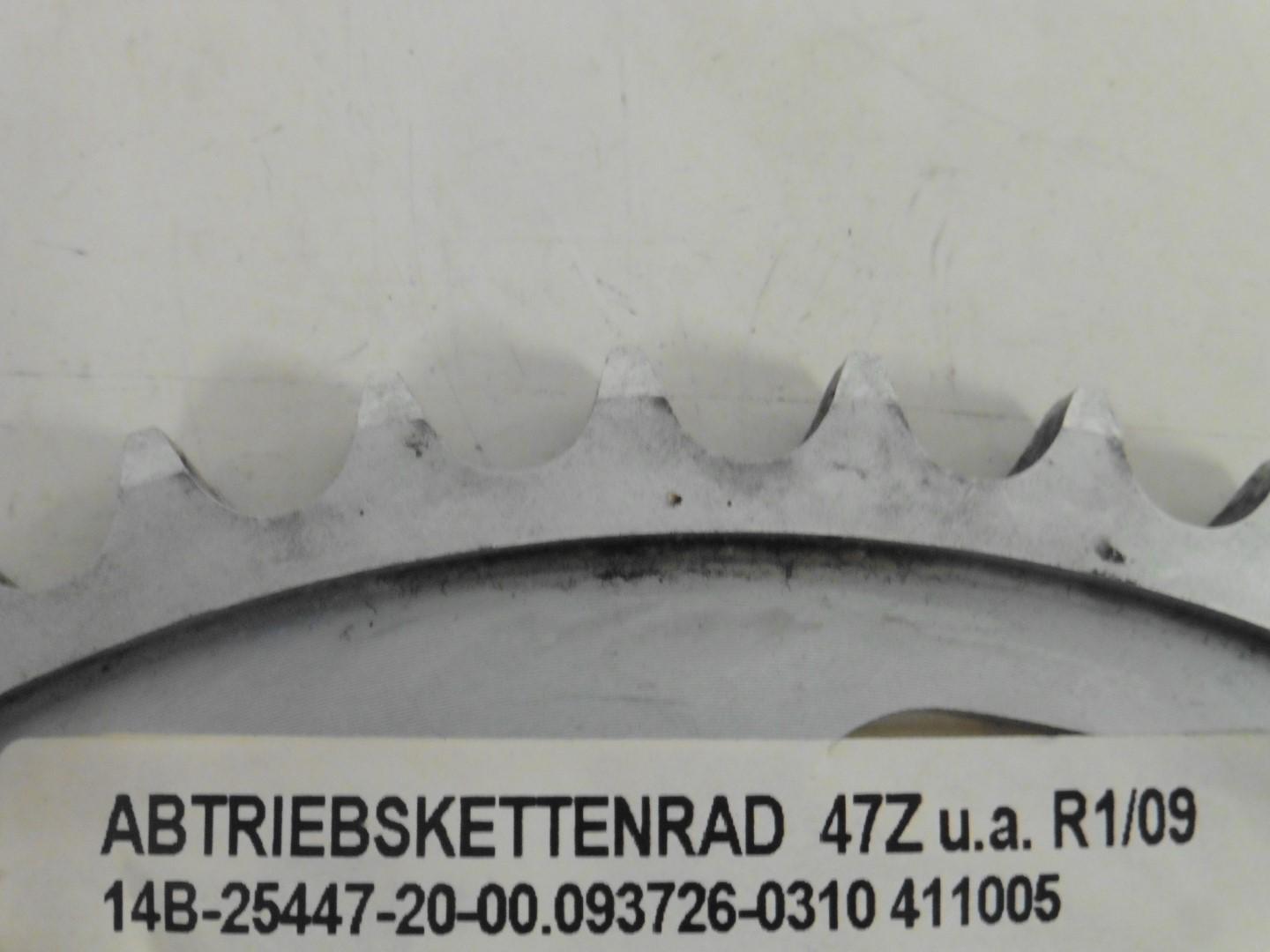 In dieser Auktion gibt es folgenden Artikel zu kaufen: Kettenrad (siehe Foto) Fahrzeug: passend für Yamaha YZF-R1 Bj.: 09 - 14 Details: Zähnezahl: 47 Lochkreis Durchmesser: ca. 130 mm Innendurchmesser: ca. 110 mm Löcher: 6 Vor dem Kauf bitte Übersetzung mit Ihrem Fahrzeug vergleichen! Lieferumfang: siehe Foto Artikelzustand: normale Gebrauchsspuren vorhanden; Zustand siehe Foto Hierbei handelt es sich um kein Originalteil! Bei Unklarheiten oder Fragen bitte erst E-Mail schreiben.