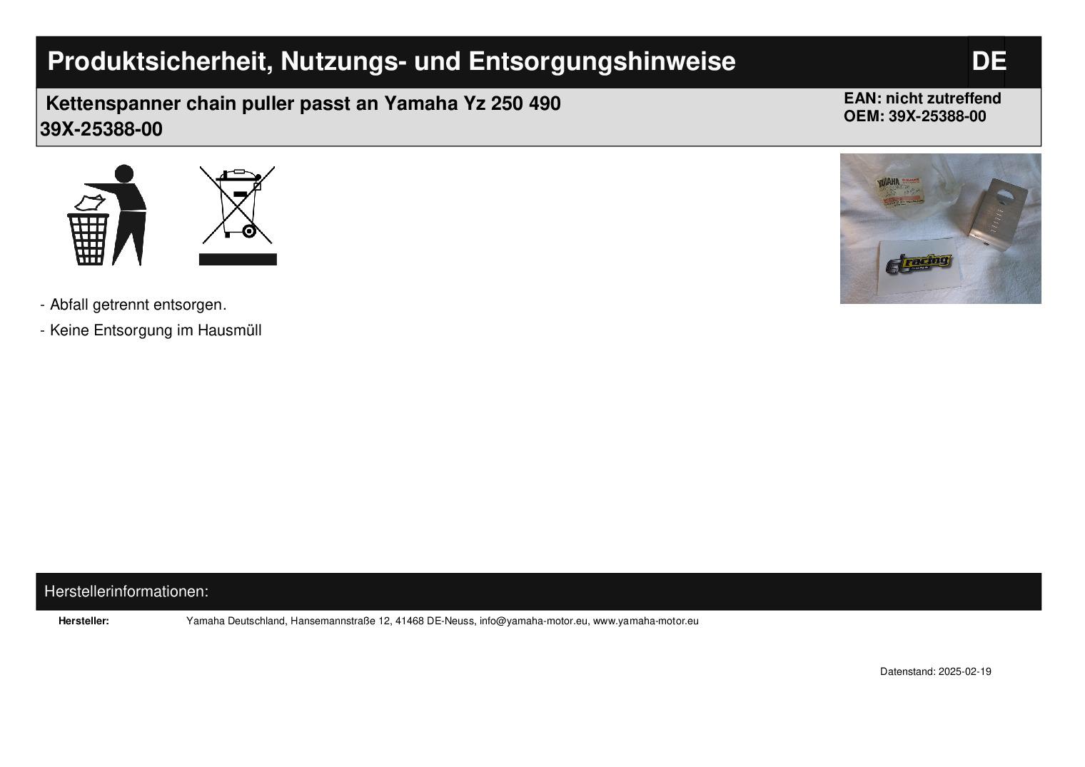In dieser Auktion gibt es folgenden Artikel zu kaufen: Kettenspanner (siehe Foto) Modell: passend für Yamaha YZ 250 K L Bj.: 1983 YZ 490 L Bj.: 1984 Lieferumfang: 1 Stück Artikelzustand: neu aus Geschäftsauflösung, mit leichten Lagerspuren; Zustand siehe Foto