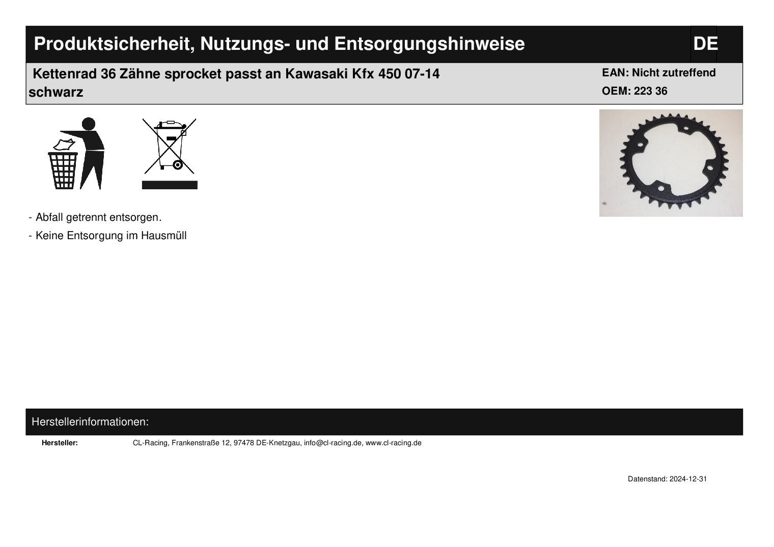 In dieser Auktion gibt es folgenden Artikel zu kaufen: Qualitäts-Kettenrad (siehe Foto) Modell: passend für Kawasaki Kfx 450 Bj.: 2007 - 2014 Zä hnezahl: 36 Vor dem Kauf bitte Übersetzung mit Ihrem Fahrzeug vergleichen! Lieferumfang: 1 Stück Artikelzustand: neu aus Geschäftsauflösung, mit leichten Lagerspuren; Zustand siehe Foto Bei Unklarheiten oder Fragen bitte erst E-Mail schreiben.