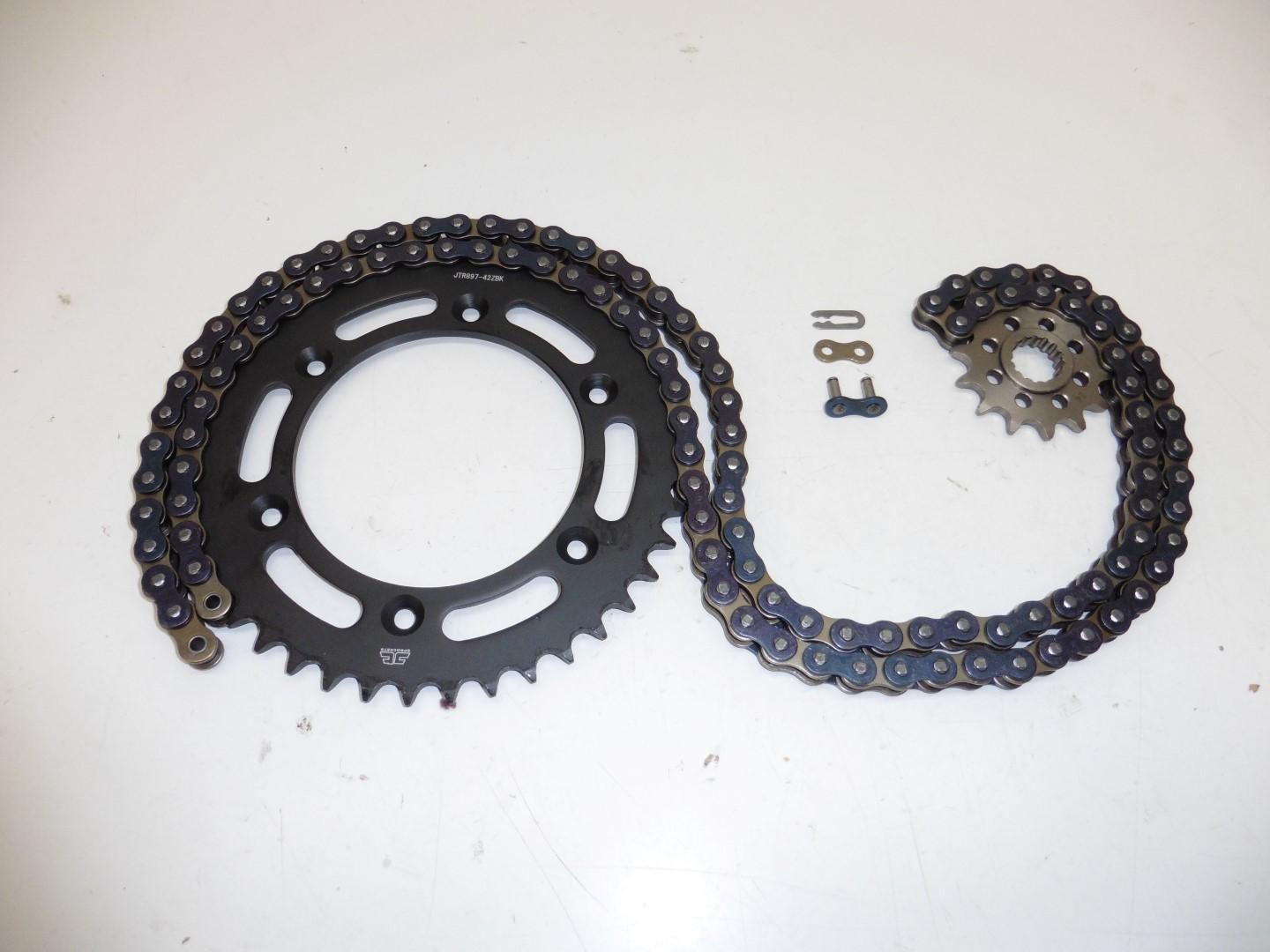 In dieser Auktion gibt es folgenden Artikel zu kaufen: Qualitäts-Kettensatz (ähnlich Foto) Modell: passend für Ktm SX-, SXF-, EXC-Modelle Bj.: 1998 - 2019 Lc4-Modelle Bj.: 1995 - 2012 Lieferumfang: 1 x schwarzes Kettenrad aus Stahl mit 42 Zähnen 1 x Ritzel mit 14 Zähnen 1 x Kette CZ 520 M 118 Glieder inklusive Kettenschloss Vor dem Kauf bitte Übersetzung mit Ihrem Fahrzeug vergleichen! Artikelzustand: neu Es handelt sich hierbei um kein Originalteil Weitere Übersetzungen auf Anfrage! Bei Unklarheiten oder Fragen bitte erst E-Mail schreiben!