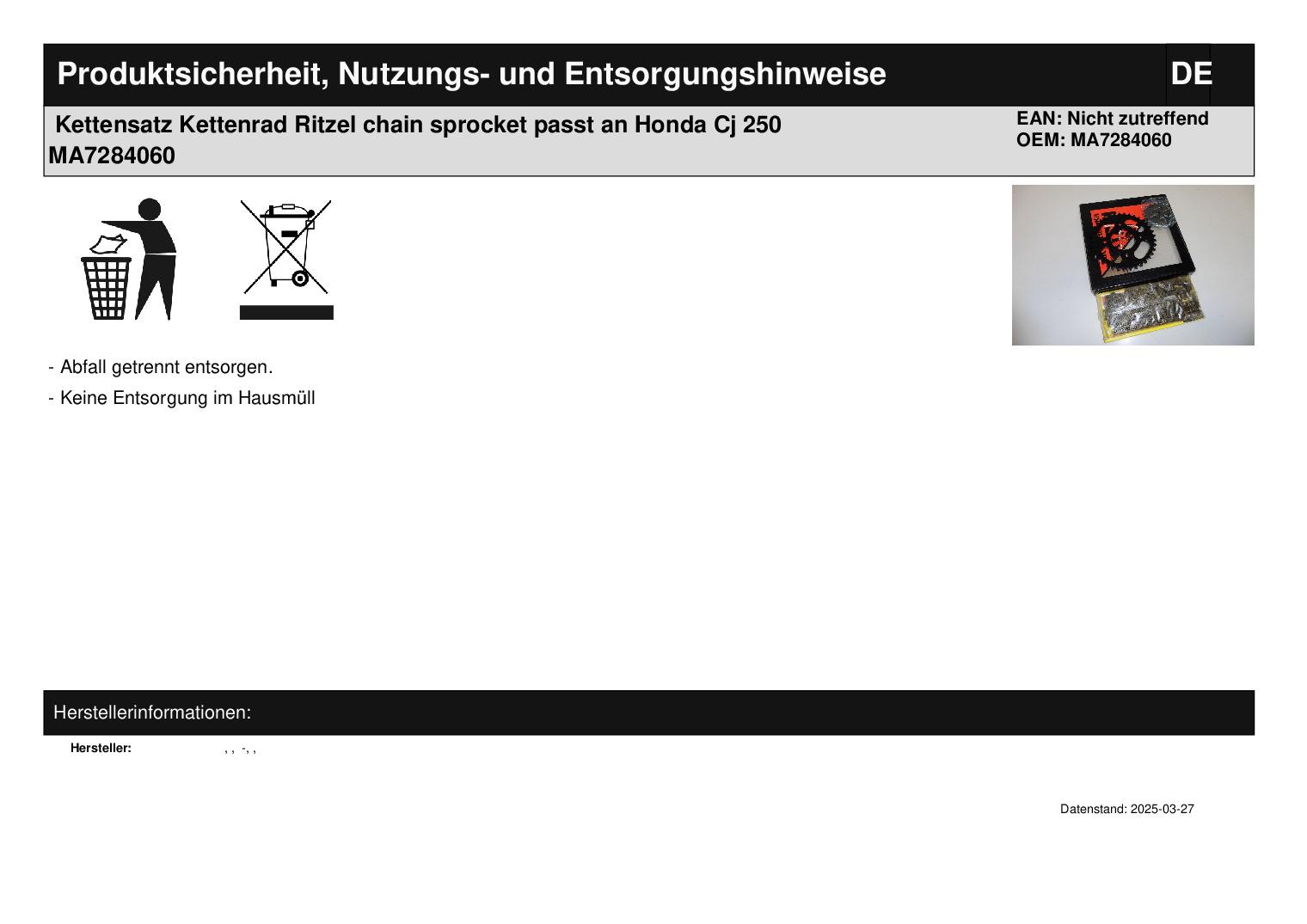 In dieser Auktion gibt es folgenden Artikel zu kaufen: Kettensatz (siehe Foto) Modell: passend für Honda CJ 250 T 2Zyl. 77 Bj.: unbekannt Vor dem Kauf bitte Übersetzung mit Ihrem Fahrzeug vergleichen! Lieferumfang: 1 Kettenrad mit 37 Zähnen 1 Ritzel mit 16 Zähnen 1 RK-Kette 530 KS, 102 Glieder, offen ohne Kettenschloss Artikelzustand: neu aus Geschäftsauflösung, mit minimalen Lagerspuren; Zustand siehe Foto Bei Unklarheiten oder Fragen bitte erst E-Mail schreiben.