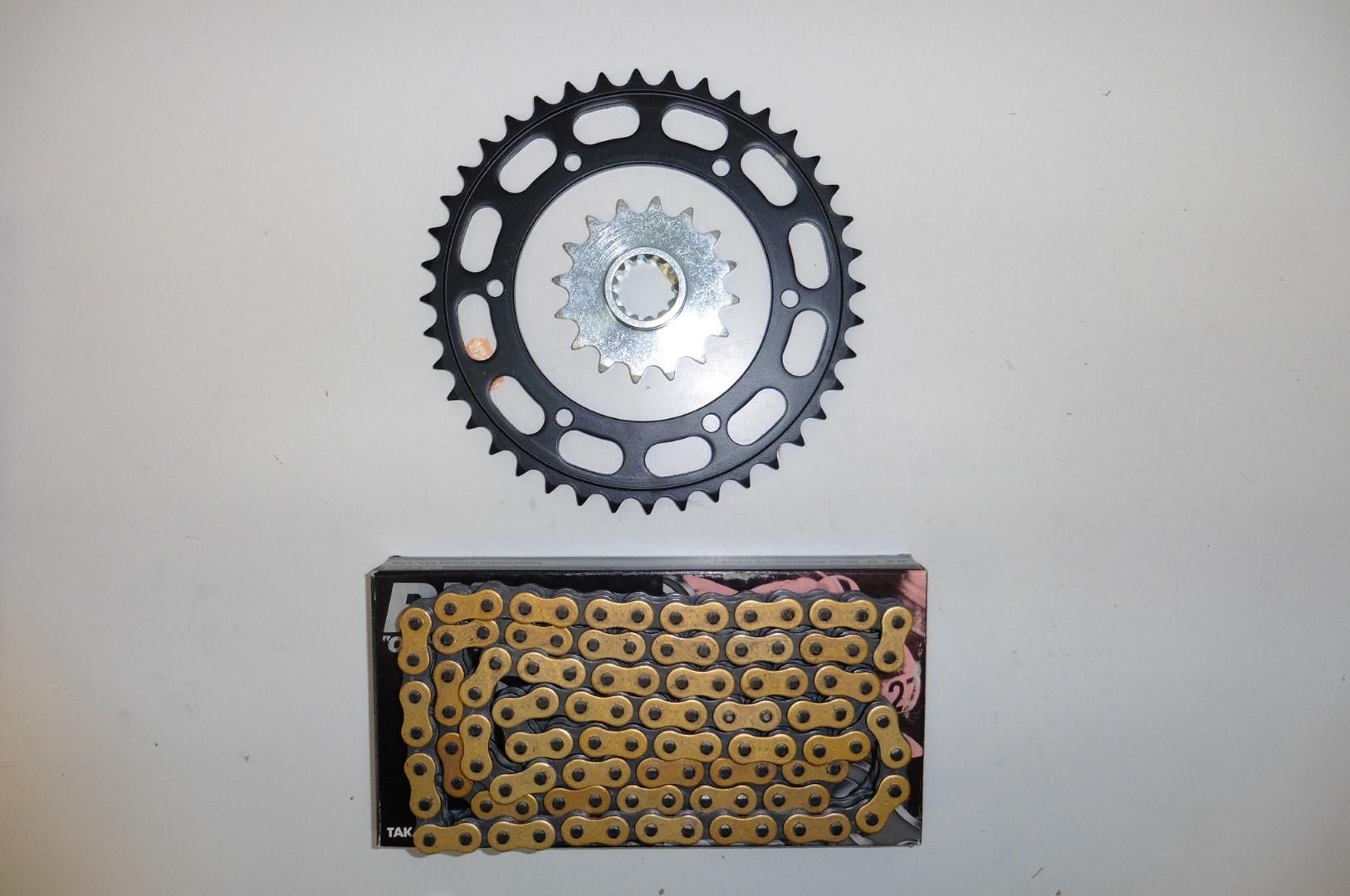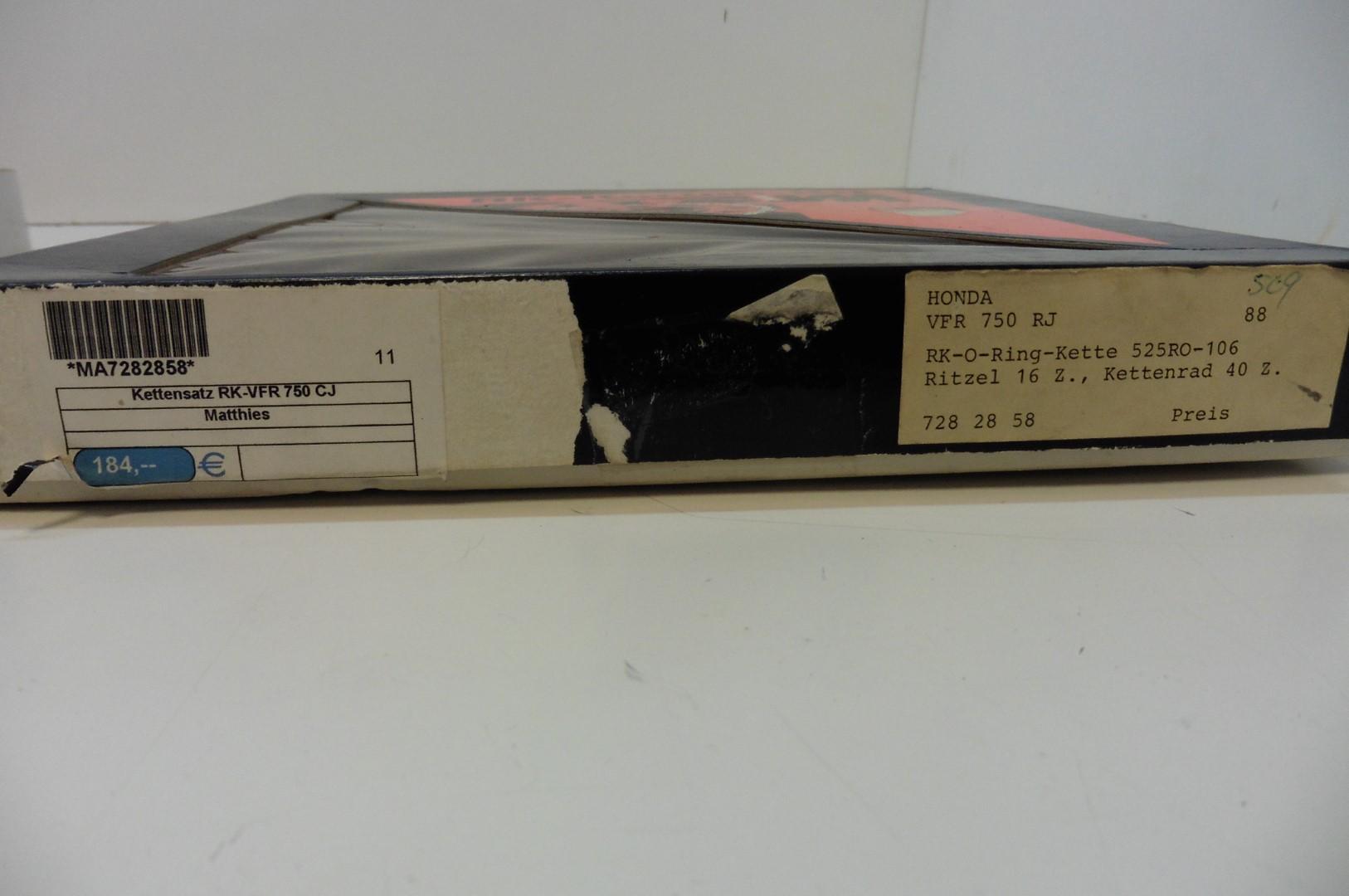 In dieser Auktion gibt es folgenden Artikel zu kaufen: Kettensatz (siehe Foto) Modell: passend für Honda VFR 750 RJ Bj.: 88 Vor dem Kauf bitte Übersetzung mit Ihrem Fahrzeug vergleichen! Lieferumfang: 1 Kettenrad mit 40 Zähnen 1 Ritzel mit 16 Zähnen 1 RK-O-Ring-Kette 525RO, 106 Glieder, geschlossen Artikelzustand: neu aus Geschäftsauflösung, mit minimalen Lagerspuren; Zustand siehe Foto Bei Unklarheiten oder Fragen bitte erst E-Mail schreiben.