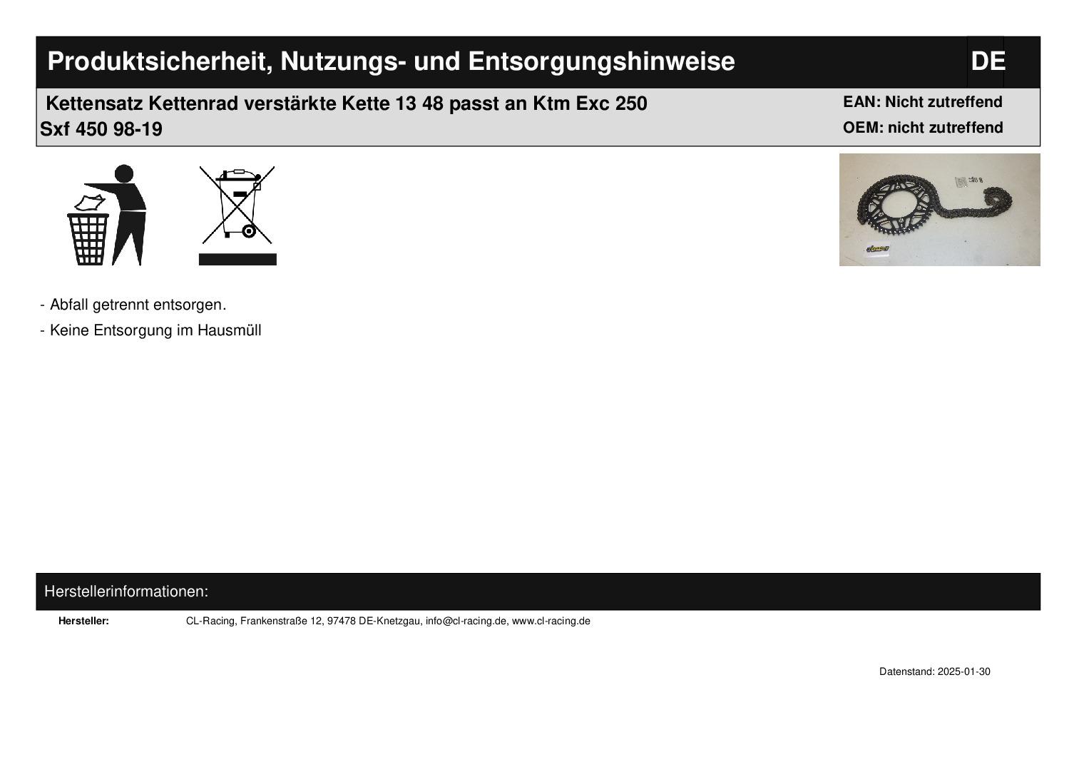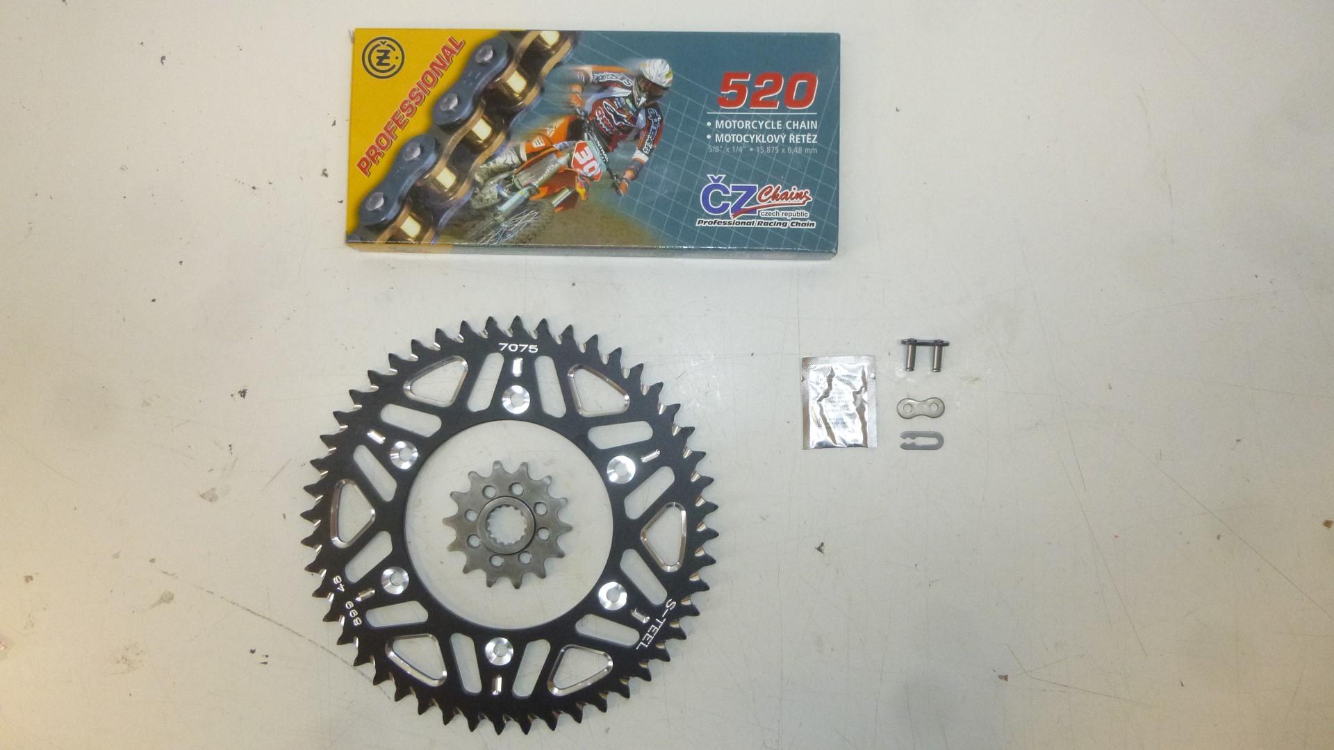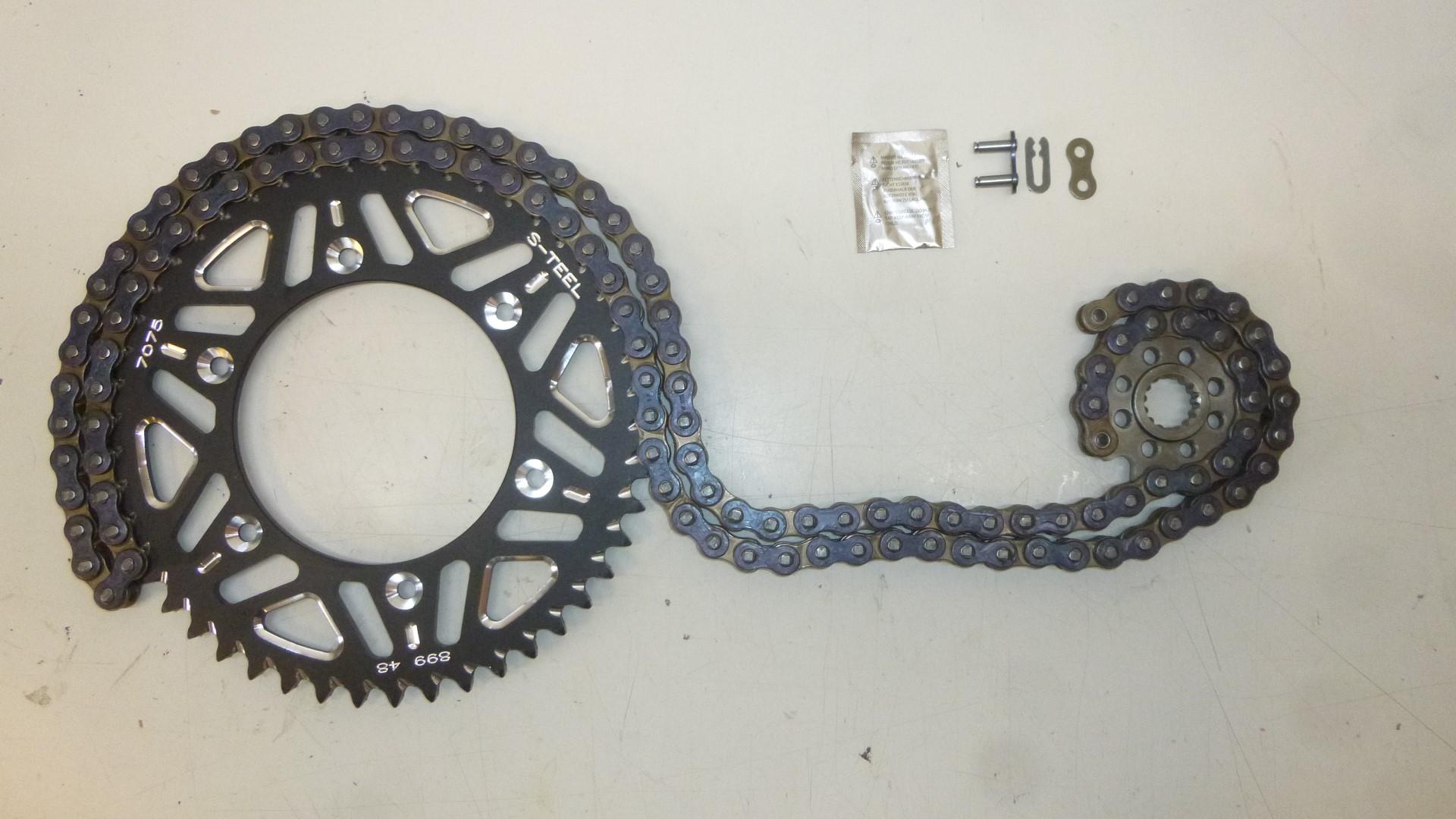In dieser Auktion gibt es folgenden Artikel zu kaufen: Qualitäts-Kettensatz (ähnlich Foto) Modell: passend für KTM SX, SXF-, EXC-Modelle Bj.: 1998 - 2019 Lc4-Modelle Bj.: 1995 - 2012 Vor dem Kauf bitte Übersetzung mit Ihrem Fahrzeug vergleichen! Lieferumfang: 1 x schwarzes Kettenrad aus Aluminium mit 48 Zähnen 1 x Ritzel mit 13 Zähnen 1 x Kette CZ 520 M 118 Glieder inklusive Kettenschloss Artikelzustand: neu Weitere Übersetzungen auf Anfrage!