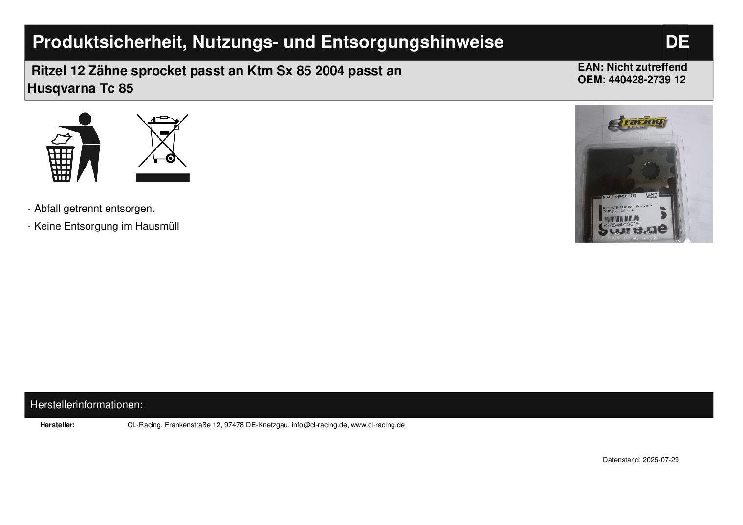 In dieser Auktion gibt es folgenden Artikel zu kaufen:    Ritzel   (siehe Foto)        Modell:     passend für KTM SX 85 Bj.: 2004 passend für Husqvarna TC 85 Bj.: 2014 Vor dem Kauf bitte Übersetzung mit Ihrem Fahrzeug vergleichen! Lieferumfang: 1 Stück     Artikelzustand:  neu