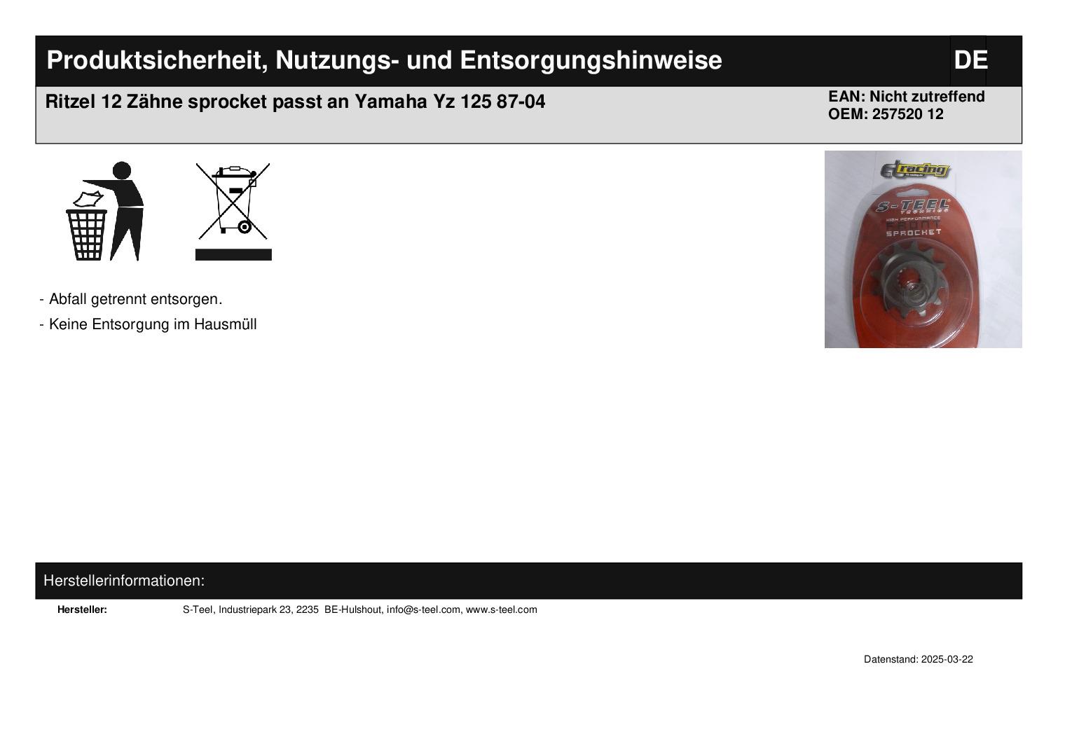 In dieser Auktion gibt es folgenden Artikel zu kaufen:    Ritzel   (siehe Foto)        Modell:   passend für Yamaha  YZ 125 Bj.: 1987 - 2004 Vor dem Kauf bitte Übersetzung mit Ihrem Fahrzeug vergleichen! Lieferumfang: 1 Stück     Artikelzustand:  neu