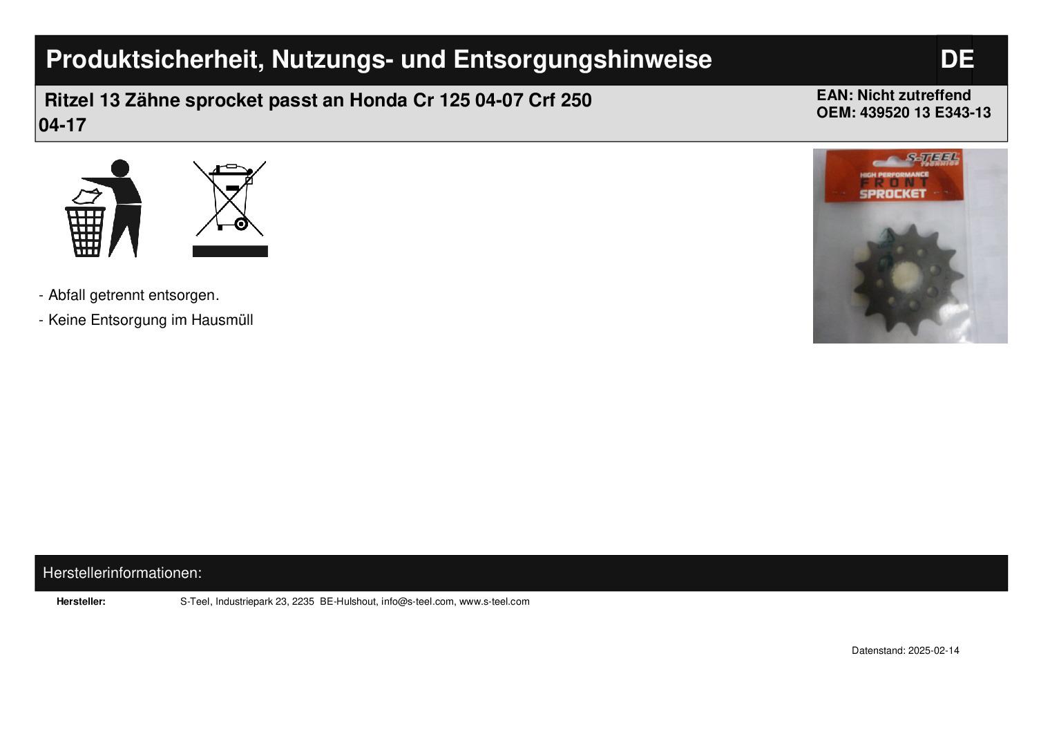 In dieser Auktion gibt es folgenden Artikel zu kaufen:    Ritzel   (siehe Foto)        Modell:   passend für Honda  CR 125 Bj.: 2004 - 2007 CRF 250 Bj.: 2004 - 2017 Vor dem Kauf bitte Übersetzung mit Ihrem Fahrzeug vergleichen! Lieferumfang: 1 Stück     Artikelzustand:  neu