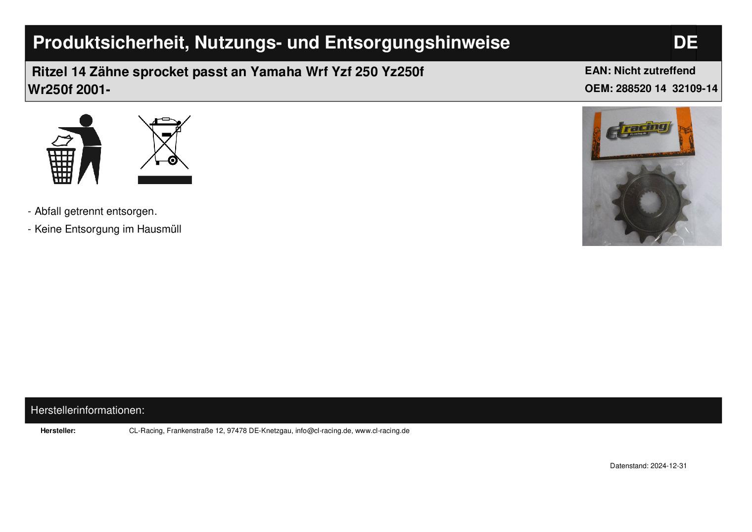In dieser Auktion gibt es folgenden Artikel zu kaufen:    Ritzel   (siehe Foto)        Modell:   passend für Yamaha  Yzf 250 Bj.: 2001 - 2017 (4-Takt) Wr-f 250 Bj.: 2001 - 2017 (4-Takt) Vor dem Kauf bitte Übersetzung mit Ihrem Fahrzeug vergleichen! Lieferumfang: 1 Stück     Artikelzustand:  neu