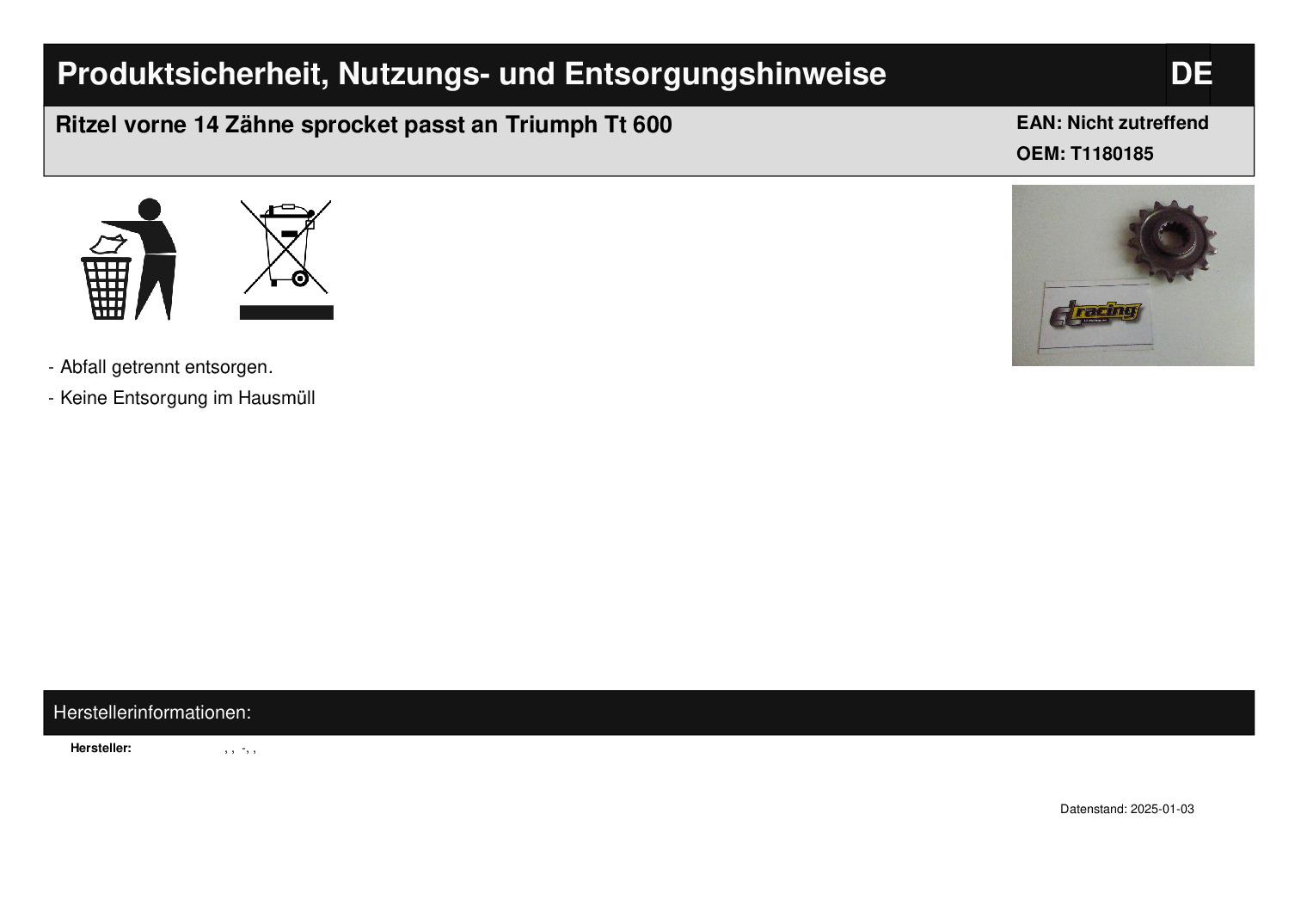 In dieser Auktion gibt es folgenden Artikel zu kaufen: Ritzel (siehe Foto) Modell: passend für Triumph TT 600 Bj.: unbekannt Details: Zähnezahl: 14 Vor dem Kauf bitte Übersetzung mit Ihrem Fahrzeug vergleichen! Lieferumfang: 1 Stück Artikelzustand: neu aus Geschäftsauflösung, mit minimalen Lagerspuren; Zustand siehe Foto Bei Unklarheiten oder Fragen bitte erst E-Mail schreiben.