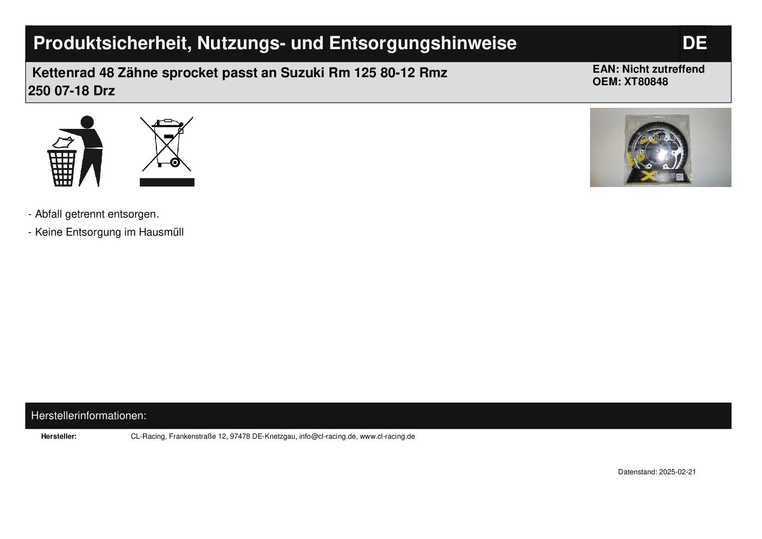In dieser Auktion gibt es folgenden Artikel zu kaufen: Kettenrad (siehe Foto) Modell: passend für Suzuki DR 350 Bj.: 90 - 95 DR 350 SE Bj.: 96 - 97 DR-Z 400 Bj.: 00 - 04 DR-Z 400 E Bj.: 00 - 07 DR-Z 400 S Bj.: 00 - 08 DR-Z 400 SM Bj.: 05 - 08 DR-Z 400 SMU Bj.: 05 - 07 RM 125 Bj.: 80 - 12 RM 250 Bj.: 81 - 83, 87 - 12 RM-Z 250 Bj.: 07 - 18 RM-Z 450 Bj.: 05 - 18 RMX 450 Z Bj.: 10 - 17 Vor dem Kauf bitte Übersetzung mit Ihrem Fahrzeug vergleichen! Abmaße: Innendurchmesser: 126 mm Lochkreis: 146 mm (Mitte Bohrung) Bohrung: 8,5 mm Durchmesser Anzahl der Bohrungen: 6 Zähnezahl: 48