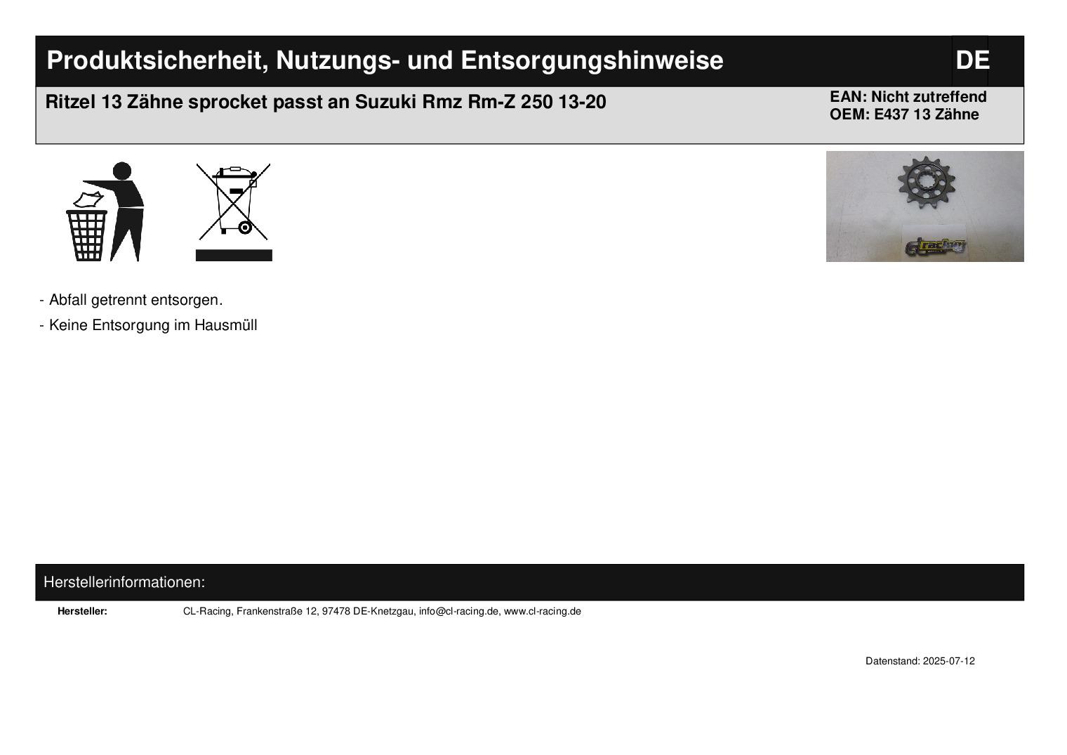 In dieser Auktion gibt es folgenden Artikel zu kaufen: Ritzel (siehe Foto) Modell: passend für Suzuki RMZ 250 Bj.: 13 - 20 Zähnezahl: 13 Vor dem Kauf bitte Übersetzung mit Ihrem Fahrzeug vergleichen! Lieferumfang: 1 Stück Artikelzustand: neu Bei Unklarheiten oder Fragen bitte erst E-Mail schreiben.