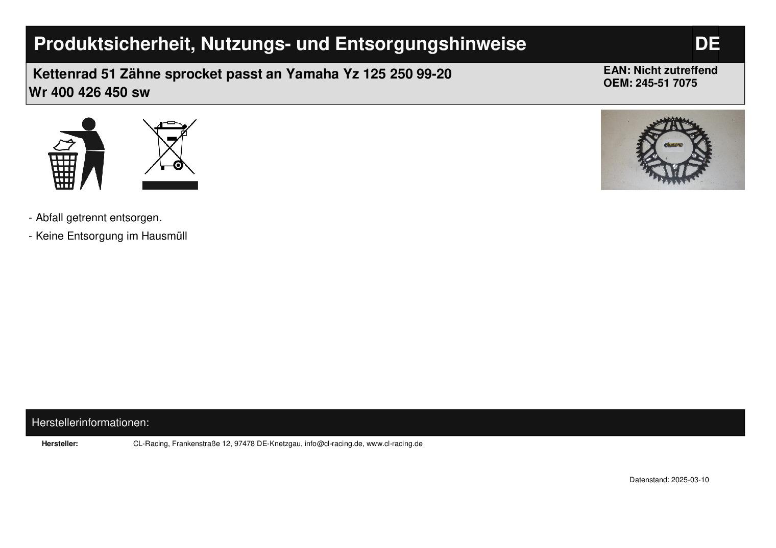 In dieser Auktion gibt es folgenden Artikel zu kaufen: Kettenrad (siehe Foto) Modell: passend für Yamaha WR 250 Bj.: 20 WR 400 Bj.: 99 - 02 WR 426 Bj.: 01 - 02 WR 450 Bj.: 03- 09 YZ 125 Bj.: 99 - 20 YZ 250 Bj.: 99 - 20 YZ 400 Bj.: 99 YZ 426 Bj.: 00 - 02 YZ 450 Bj.: 04 - 20 Details: