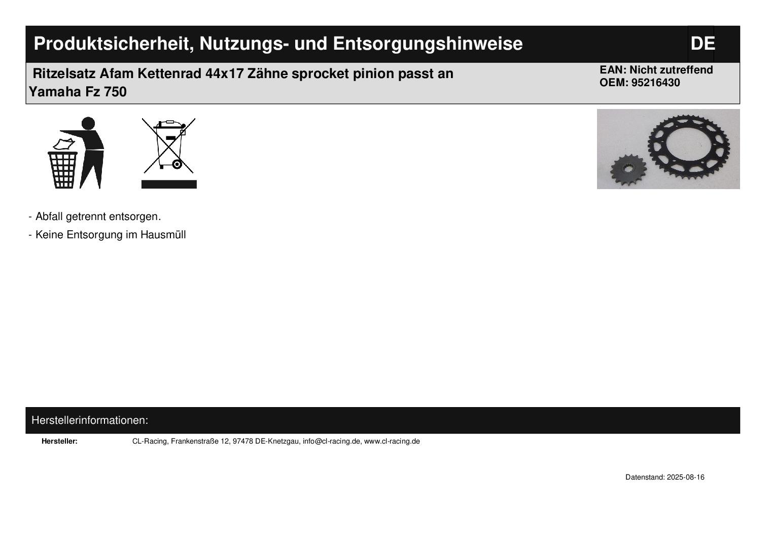 In dieser Auktion gibt es folgenden Artikel zu kaufen: Kettenrad und Ritzel (siehe Foto) Hersteller: Afam Modell: passend für Yamaha FZ 750 Bj.: unbekannt Artikelbeschreibung: - Kettenrad: 865 (ist eingeprägt) Abmaße: