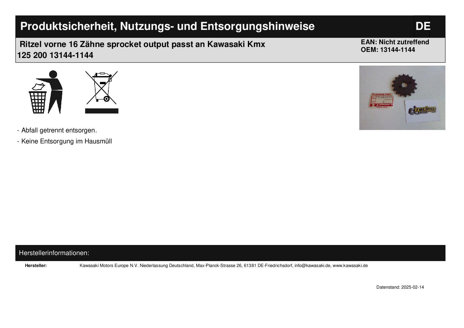 In dieser Auktion gibt es folgenden Artikel zu kaufen: Ritzel (siehe Foto) Modell: passend für Kawasaki KMX 125 Bj.: 99 - 01 KMX 200 Bj.: unbekannt Details: Zähnezahl: 16 Vor dem Kauf bitte Übersetzung mit Ihrem Fahrzeug vergleichen! Lieferumfang: 1 Stück Artikelzustand: neu aus Geschäftsauflösung, mit minimalen Lagerspuren; Zustand siehe Foto Bei Unklarheiten oder Fragen bitte erst E-Mail schreiben.