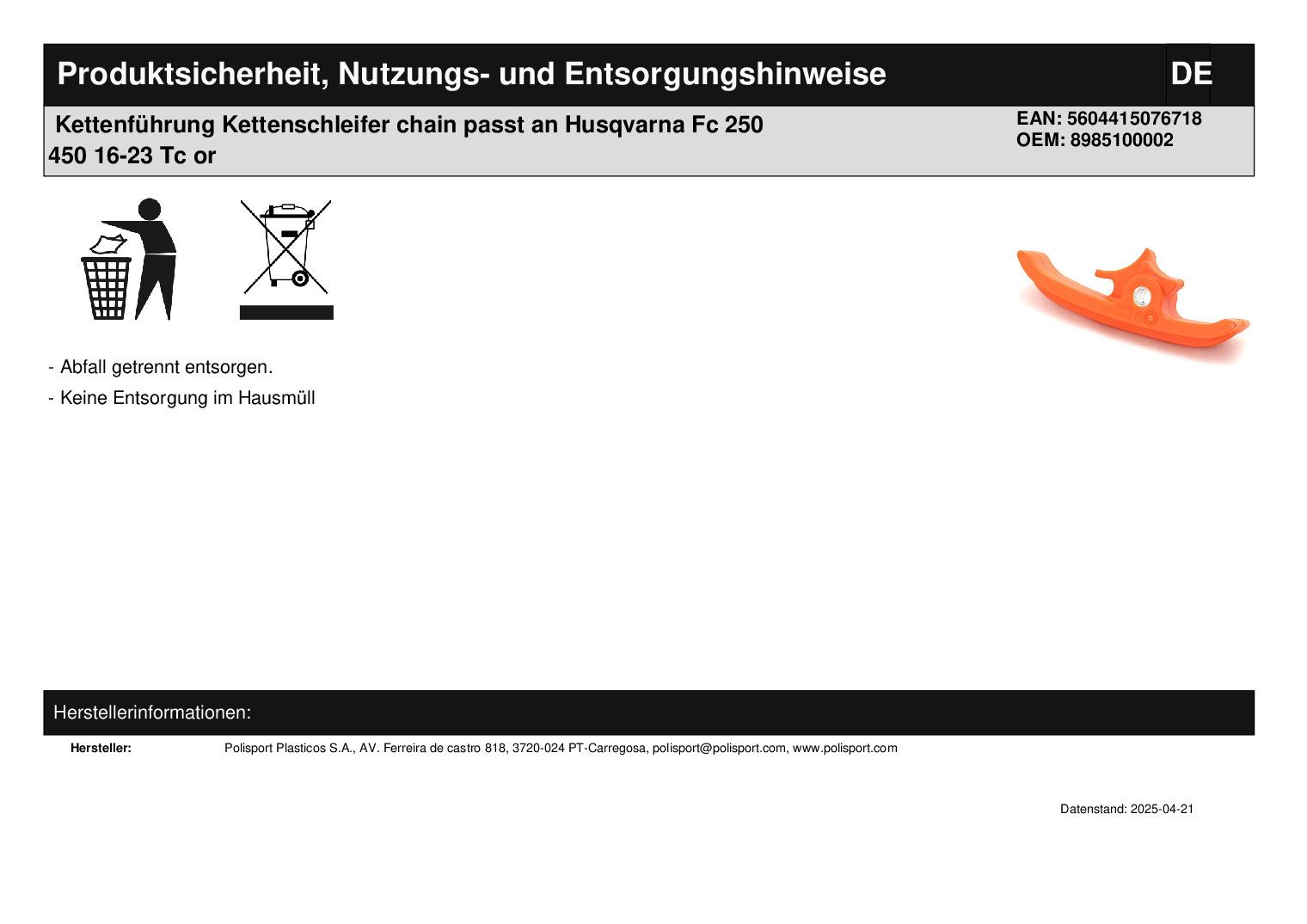 In dieser Auktion gibt es folgenden Artikel zu kaufen: Kettenführung (ähnlich Foto) Modell: passend für KTM EXC 125 Bj.: 2017 - 2019 EXC 200 Bj.: 2017 - 2023 EXC 250 Bj.: 2017 EXC 300 Bj.: 2017 EXC TPI 150 Bj.: 2020 - 2023 EXC TPI 250 Bj.: 2018 - 2023 EXC TPI 300 Bj.: 2018 - 2023 EXC-F 250 Bj.: 2017 - 2023 EXC-F 350 Bj.: 2017 - 2023 EXC-F 450 Bj.: 2017 - 2023 EXC-F 500 Bj.: 2017 - 2023 SX 85 Bj.: 2015 - 2024 SX 125 Bj.: 2016 - 2022 SX 250 Bj.: 2017 - 2022 SX-F 250 Bj.: 2016 - 2022 SX-F 350 Bj.: 2016 - 2022 SX-F 450 Bj.: 2016 - 2022 XC 150 Bj.: 2016 - 2023 XC 250 Bj.: 2016 - 2022 XC 300 Bj.: 2016 - 2022 XC-F 250 Bj.: 2016 - 2022 XC-F 350 Bj.: 2016 - 2022 XC-F 450 Bj.: 2016 - 2022 passend für GasGas EC 250 Bj.: 2021 - 2023 EC 300 Bj.: 2021 - 2023 EC-F 250 Bj.: 2021 - 2023 EC-F 350 Bj.: 2021 - 2023 EC-F 450 Bj.: 2022 - 2023 EC-F 500 Bj.: 2022 - 2023 MC 85 Bj.: 2021 - 2024 MC 125 Bj.: 2021 - 2023 MC 250 Bj.: 2022 - 2023 MC-F 250 Bj.: 2021 - 2023 MC-F 350 Bj.: 2021 - 2023 MC-F 450 Bj.: 2021 - 2023 passend für Husqvarna FC 250 Bj.: 2016 - 2022 FC 350 Bj.: 2016 - 2022 FC 450 Bj.: 2016 - 2022 FE 250 Bj.: 2017 - 2023 FE 350 Bj.: 2017 - 2023 FE 450 Bj.: 2017 - 2023 FE 501 Bj.: 2017 - 2023 TC 85 Bj.: 2015 - 2024 TC 125 Bj.: 2016 - 2022 TC 250 Bj.: 2016 - 2022 TE 125 Bj.: 2017 - 2019 TE 250 Bj.: 2017 TE 300 Bj.: 2017 TE i 150 Bj.: 2020 - 2023 TE i 250 Bj.: 2018 - 2023 TE i 300 Bj.: 2018 - 2023 TX 125 Bj.: 2017 - 2022 Lieferumfang: siehe Foto Artikelzustand: neu Hierbei handelt es sich um kein Originalteil! Bei Unklarheiten oder Fragen bitte erst E-Mail schreiben.