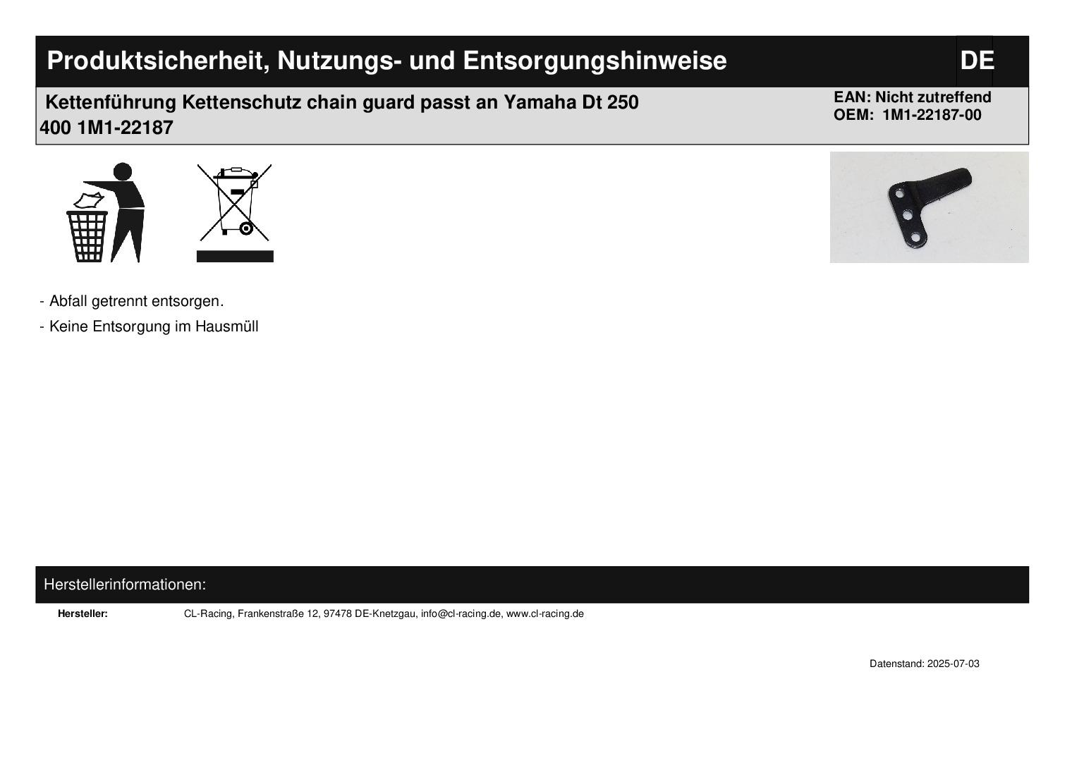 In dieser Auktion gibt es folgenden Artikel zu kaufen: Kettenführung (siehe Foto) Modell: passend für Yamaha DT 250 Bj.: 1978 - 1979 DT 400 Bj.: 1979 Lieferumfang: siehe Foto Artikelzustand: neu aus Geschäftsauflösung, mit minimalen Lagerspuren; Zustand siehe Foto Bei Unklarheiten oder Fragen bitte erst E-Mail schreiben.