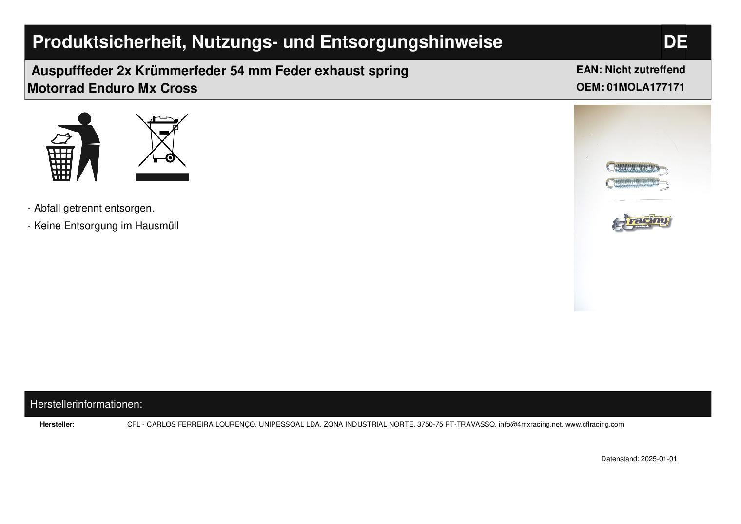 In dieser Auktion gibt es folgenden Artikel zu kaufen: Auspuff-/Krümmerfedern (ähnlich Foto) Modell: universal Länge: 54 mm Lieferumfang: 2 Stück Artikelzustand: neu Bei Unklarheiten oder Fragen bitte erst E-Mail schreiben.