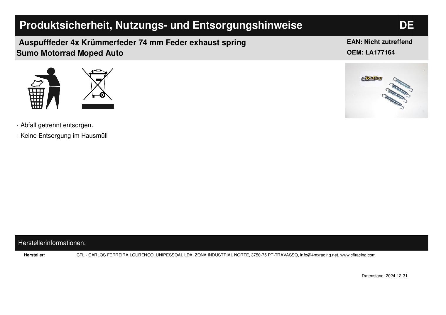 Titel: 4x Auspufffedern Krümmerfedern 74 mm exhaust spring Sumo Motorrad Moped Auto