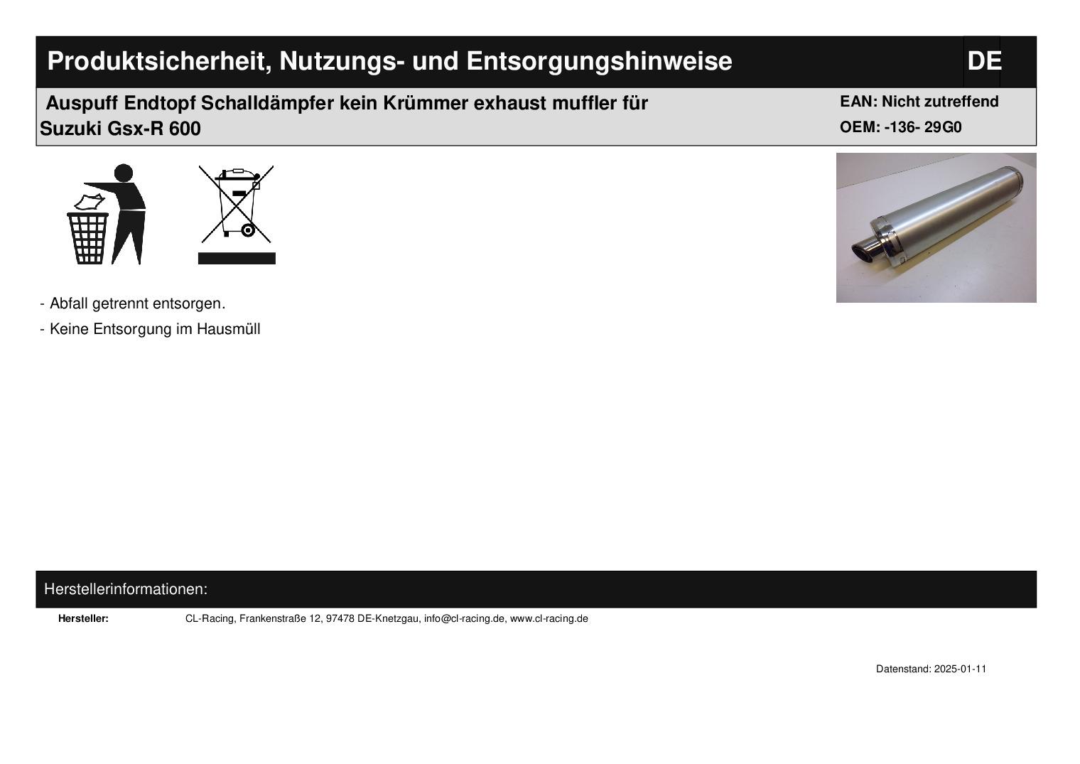 Auspuff Endtopf Schalldämpfer exhaust silencer passt an Yamaha R6 2Co 2010 si