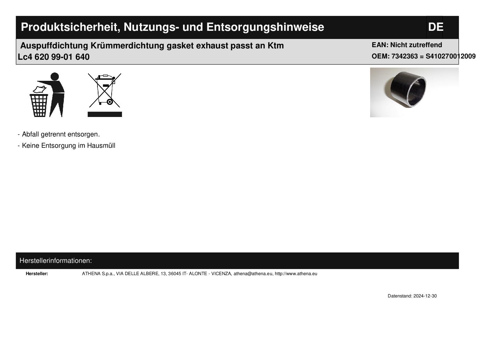 In dieser Auktion gibt es folgenden Artikel zu kaufen: Auspuffdichtung (ähnlich Foto) Modell: passend für Ktm Sx, Exc 250 Bj.: 2017 - 2023 (2-Takt) Sx, Exc 300 Bj.: 2017 - 2023 (2-Takt) passend für Husqvarna Mx Tc 250 Bj.: 2017 - 2023 (2-Takt) Te 250 Bj.: 2017 - 2023 (2-Takt) Te 300 Bj.: 2017 - 2023 (2-Takt) Tx 300 Bj.: 2017 - 2023 (2-Takt) passend für GasGas Ex 250 300 Bj.: 2021 - 2023 (2-Takt) Ec 250 300 Bj.: 2021 - 2023 (2-Takt) Mc 250 300 Bj.: 2021 - 2023 (2-Takt) Abmaße: Innendurchmesser: Ø 30 bzw. Ø 28 mm Länge: ca. 70 mm Bitte Abmaße prüfen! Lieferumfang: siehe Foto Artikelzustand: neu Es handelt sich hierbei um kein Originalteil! Bei Unklarheiten oder Fragen bitte erst E-Mail schreiben.