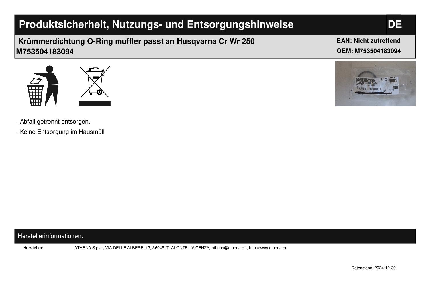In dieser Auktion gibt es folgenden Artikel zu kaufen: O-Ring-Krümmerdichtung (siehe Foto) Modell: passend für Husqvarna CR, WR 250 Bj.: 1999 - 2006 Abmaße: 3,53 X 46,04 mm Lieferumfang: 1 Stück Artikelzustand: neu aus Geschäftsauflösung, mit minimalen Lagerspuren; Zustand siehe Foto Bei Unklarheiten oder Fragen bitte erst E-Mail schreiben.