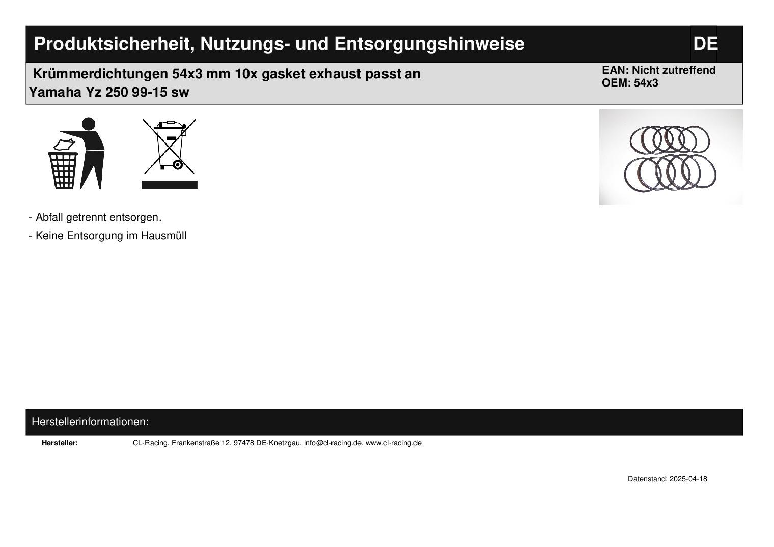 In dieser Auktion gibt es folgenden Artikel zu kaufen: Krümmerdichtungen (siehe Foto) Modell: passend für Yamaha YZ 250 Bj.: 1999 - 2015 (2-Takt) Material: FMK (Viton) hitzebeständig Abmaße: 54 x 3 mm Lieferumfang: 10 Stück Artikelzustand: neu Bei Unklarheiten oder Fragen bitte erst E-Mail schreiben.