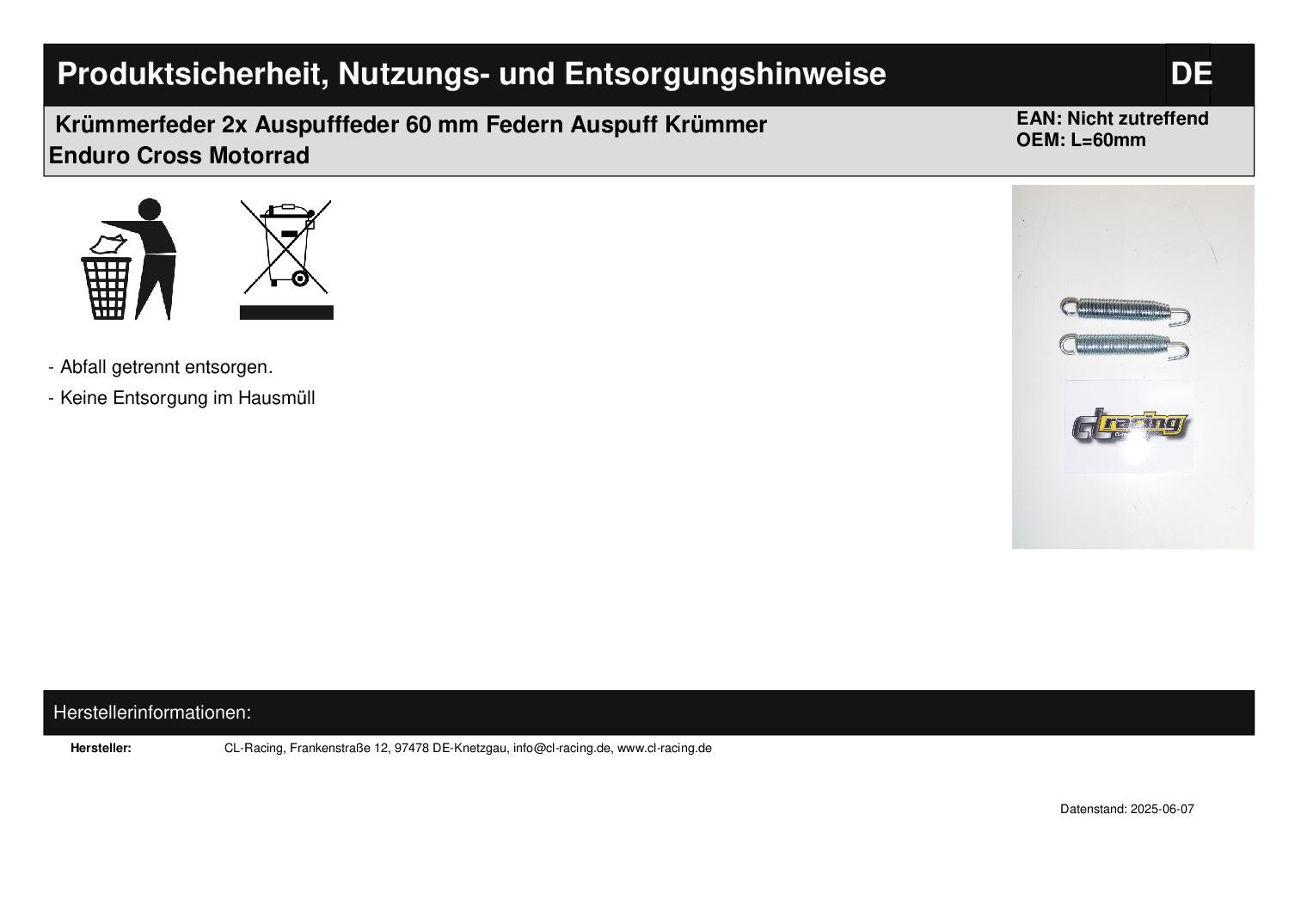 In dieser Auktion gibt es folgenden Artikel zu kaufen: Krümmer-, Auspufffeder (siehe Foto) Länge: 60 mm Lieferumfang: 2 Stück Artikelzustand: neu Bei Unklarheiten oder Fragen bitte erst E-Mail schreiben.