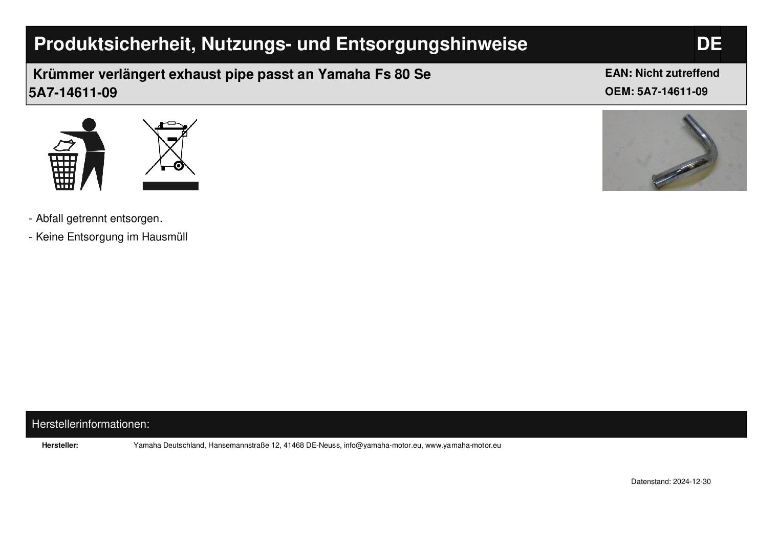 In dieser Auktion gibt es folgenden Artikel zu kaufen:    Krümmer (siehe Foto)      Modell:   passend für Yamaha  FS 80 SE 5A7 Bj.: unbekannt     Lieferumfang:  siehe Foto       Artikelzustand:  neu aus Geschäftsauflösung, mit Lagerspuren; Zustand siehe Foto      Bei Unklarheiten oder Fragen bitte erst E-Mail schreiben.