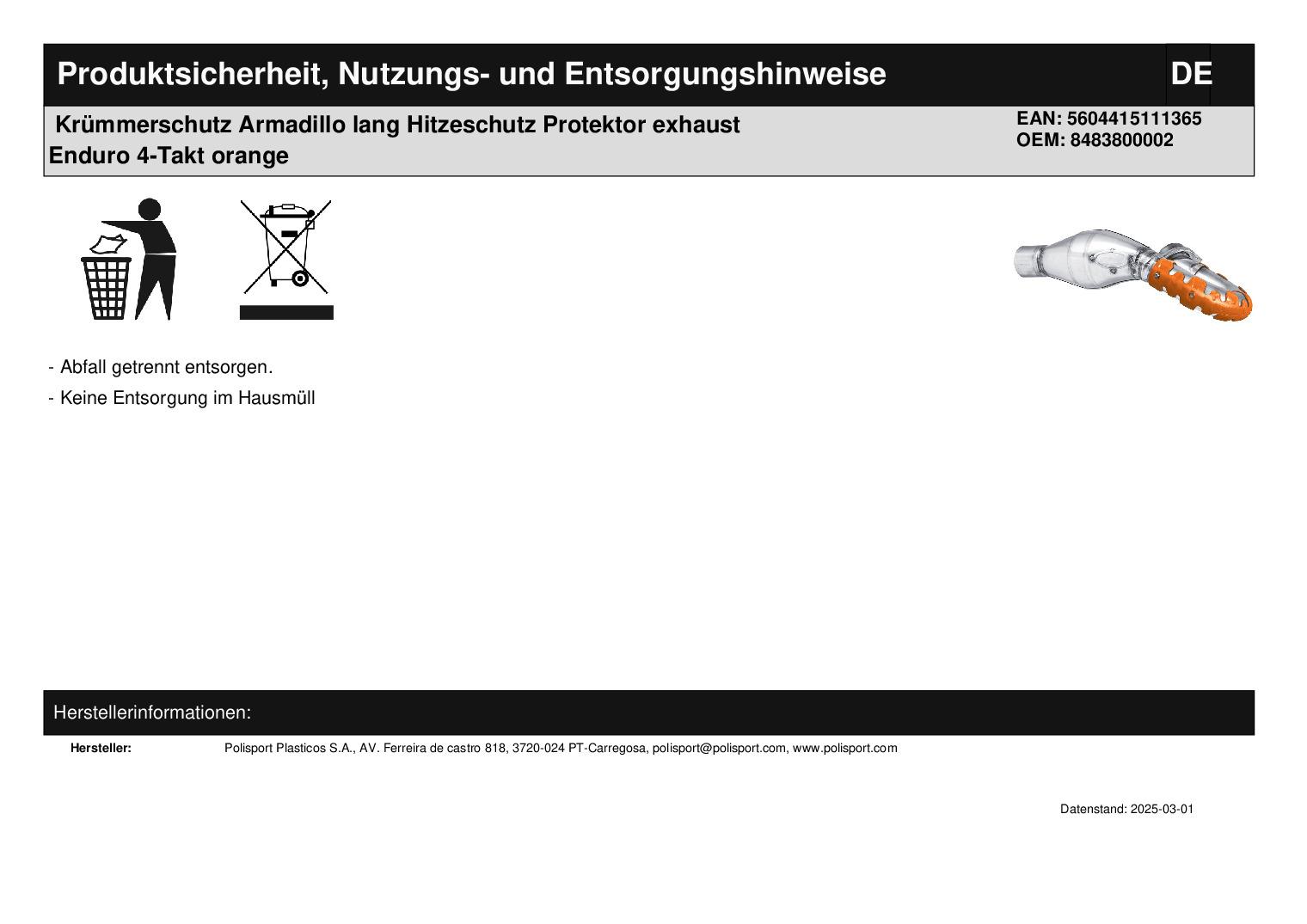 Titel: Krümmerschutz Armadillo lang Hitzeschutz Protektor exhaust Enduro 4-Takt orange