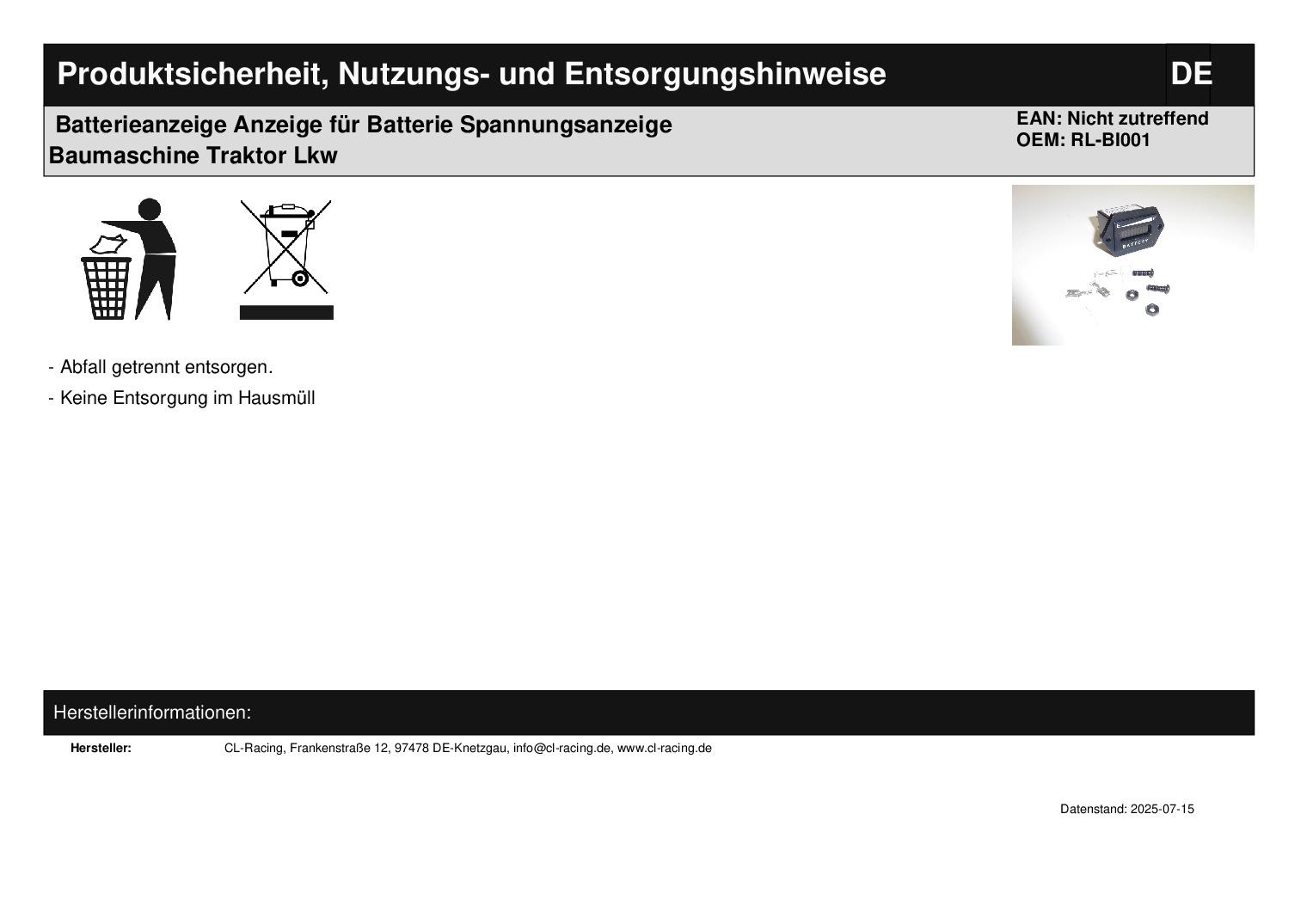 In dieser Auktion gibt es folgenden Artikel zu kaufen: wasserdichte Batterieanzeige (siehe Foto) Artikelbeschreibung: Batterieanzeige für 12 Volt betriebene Fahrzeuge und Baugeräte, wie z. B. Wohnwagen, Wohnmobil, Traktor usw. Elektrische Arbeiten sollten immer von Fachkräften und nicht von Laien ausführt werden! A bmaße: siehe Bild (L x B x H) Lieferumfang: Batterieanzeige, Befestigungsmaterial und Einbauanleitung Artikelzustand: neu Bei Unklarheiten oder Fragen bitte erst E-Mail schreiben.
