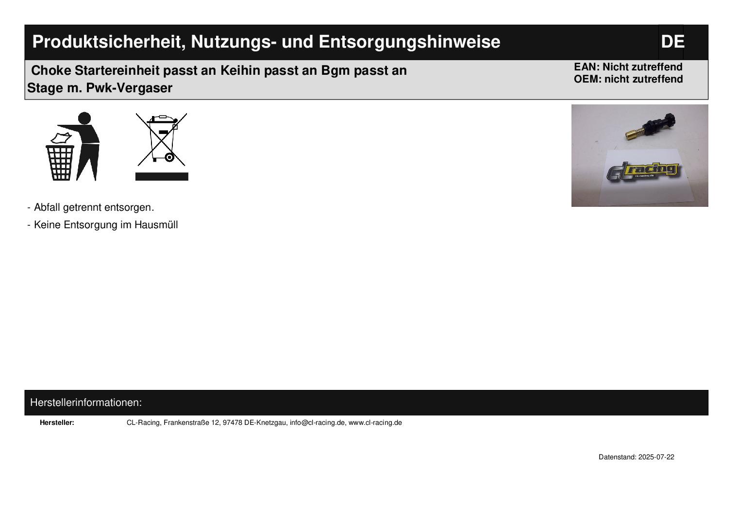 In dieser Auktion gibt es folgenden Artikel zu kaufen: Choke- bzw. Startereinheit (siehe Foto) passend für folgende Vergaser: OKO, Keihin, Stage 6, Hebo, Koso, BGM, Motoforce mit PWK-Vergaser ! Lieferumfang: siehe Foto Artikelzustand: neu