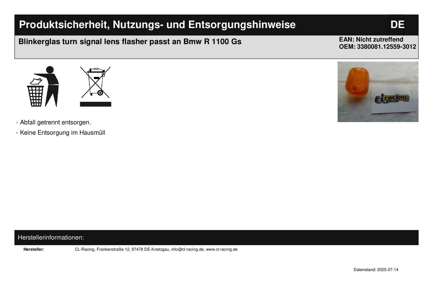 In dieser Auktion gibt es folgenden Artikel zu kaufen: Blinkerglas (siehe Foto) Modell: passend für BMW R 1100 GS Bj.: unbekannt Lieferumfang: 1 Stück Artikelzustand: neu aus Geschäftsauflösung, mit minimalen Lagerspuren; Zustand siehe Foto Bei Unklarheiten oder Fragen bitte erst E-Mail schreiben.