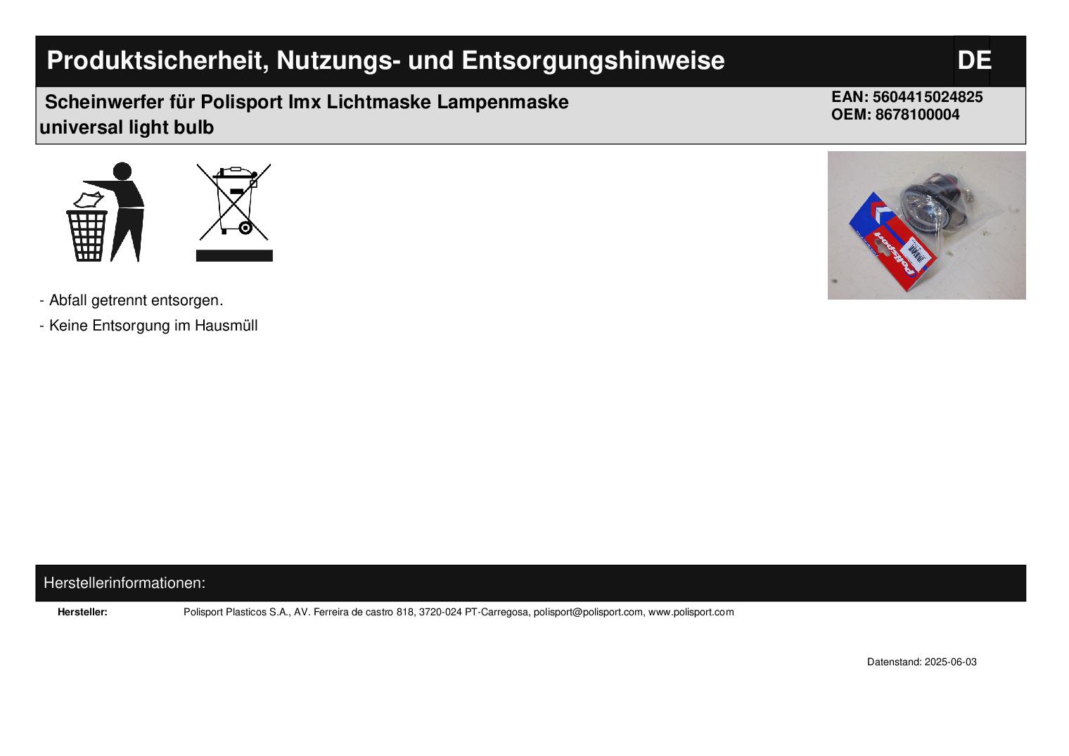 In dieser Auktion gibt es folgenden Artikel zu kaufen: Scheinwerfer (siehe Foto) passend für: Polisport IMX Lichtmaske Artikelbeschreibung: 12 Volt, 55 Watt Lieferumfang: siehe Foto Artikelzustand: neu Bei Unklarheiten oder Fragen bitte erst E-Mail schreiben.