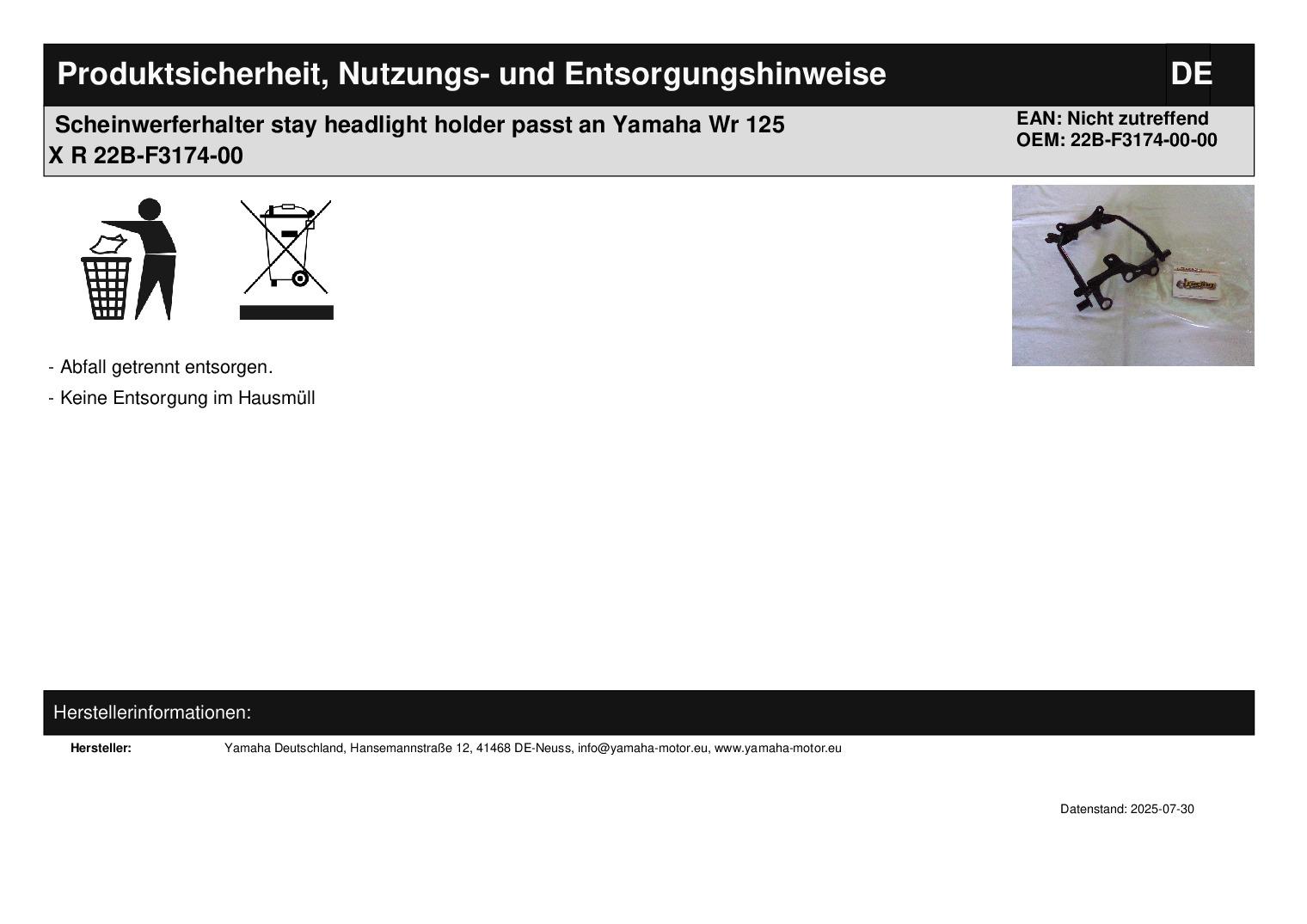 In dieser Auktion gibt es folgenden Artikel zu kaufen: Scheinwerferhalter (siehe Foto) Modell: passend für Yamaha WR 125 X Bj.: 09 - 14 WR 125 R Bj.: 09 - 14 Lieferumfang: siehe Foto Artikelzustand: neu aus Geschäftsauflösung, mit minimalen Lagerspuren; Zustand siehe Foto Bei Unklarheiten oder Fragen bitte erst E-Mail schreiben.