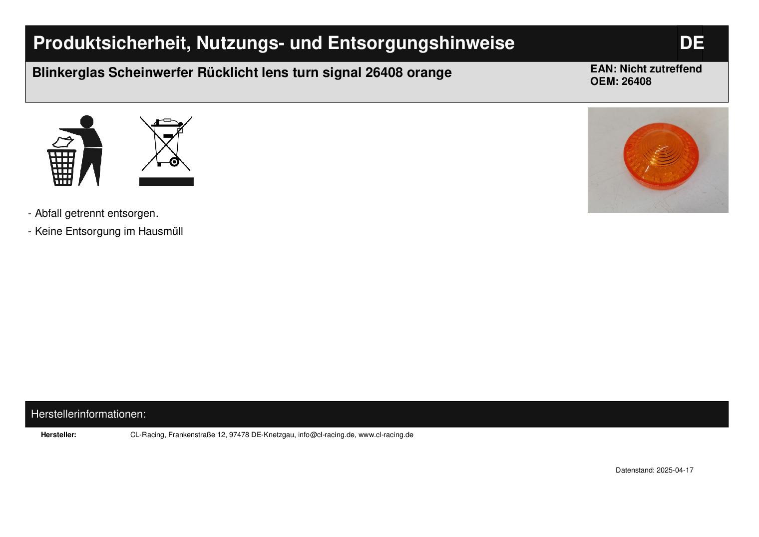 Titel: Blinkerglas Scheinwerfer Rücklicht lens turn signal 26408 orange