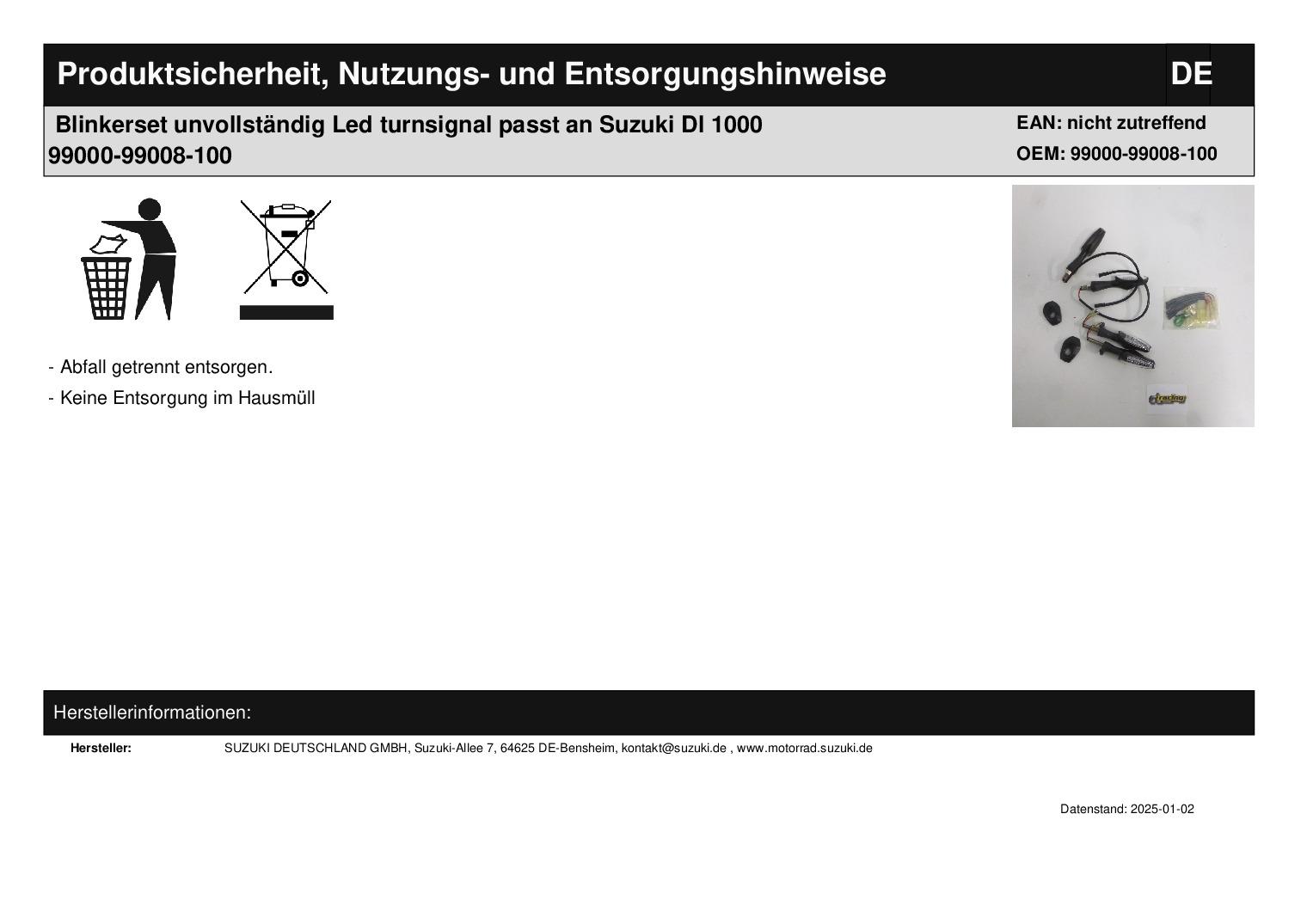 In dieser Auktion gibt es folgenden Artikel zu kaufen: LED-Blinkerset unvollständig (siehe Foto) Modell: passend für Suzuki DL 1000 V-Strom Bj.: 2014 - 2016 Lieferumfang: siehe Foto Es werden nur die Teile geliefert, welche auf dem ersten Foto zu sehen sind! Artikelzustand: neu Bei Unklarheiten oder Fragen bitte erst E-Mail schreiben.