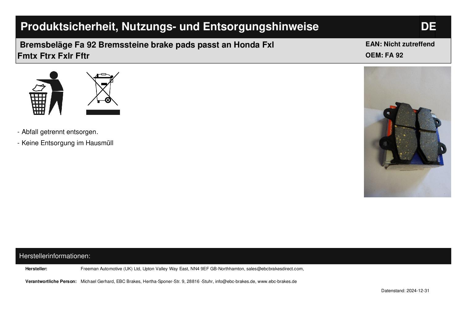 In dieser Auktion gibt es folgenden Artikel zu kaufen: Bremsbeläge (siehe Foto) Modell: passend für Honda CR 125 RE/RF/RG Bj. 84 - 86 FMTX 125 RWE/RWF/RWH/RWL Bj. 85 - 95 FXL 125 RF/RH Bj. 85 - 86 FXL 200 R Bj. 85 FMTX 200 RWF Bj. 85 FFTR 223 (MC34) Y/2/A2 Bj. 00 - 02 FATC 250 RF/RG Bj. 85 - 86 F&RCR 250 RE/RF/RG Bj. 84 - 86 FXR 250 RE/RF/RG/RH Bj. 84 - 87 FXLR 250 R (MD22) Bj. 88 - 90 FTRX 250 RG/RH/RJ/RK Bj. 86 - 89 RXR 350 RE Bj. 84 FCR 500 RE/RF/RG Bj. 84 - 86 FXR 500 RD/RE Bj. 84 - 85 FXL 600 RD/LD/RE/LE/RF/RG/RH Bj. 83 - 87 FXR 600 RF-RH Bj. 85 - 87 Lieferumfang: siehe Foto Artikelzustand: neu aus Geschäftsauflösung, mit minimalen Lagerspuren; Zustand siehe Foto Bei Unklarheiten oder Fragen bitte erst E-Mail schreiben.