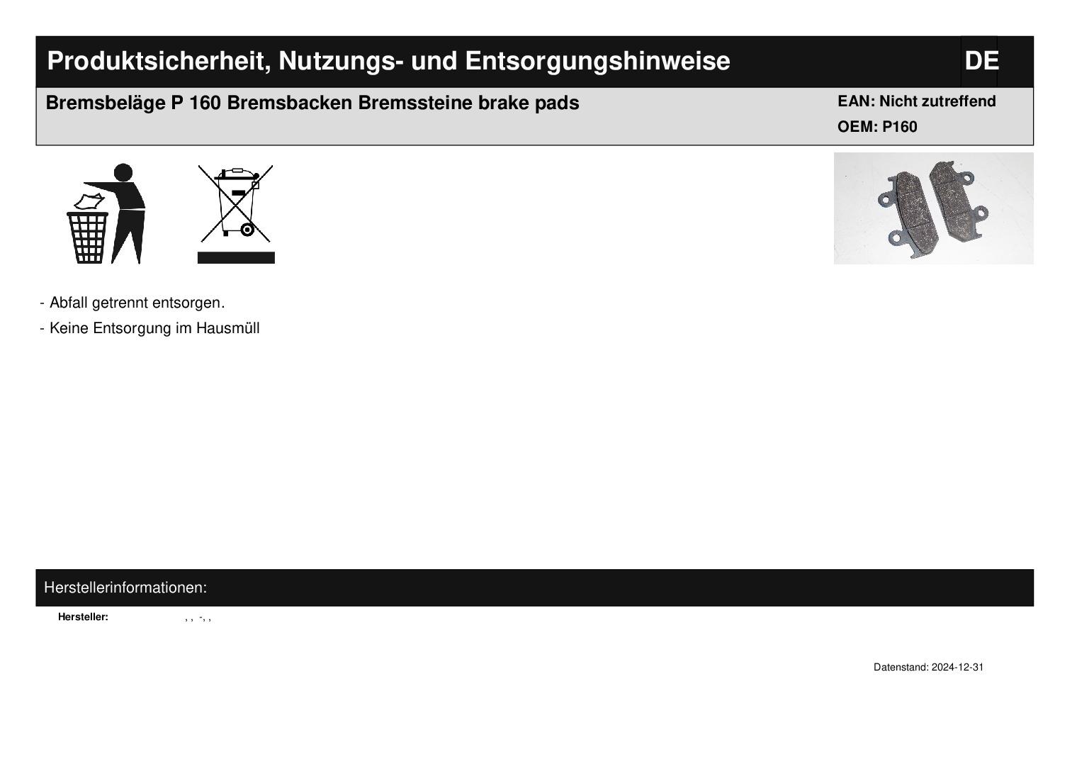 In dieser Auktion gibt es folgenden Artikel zu kaufen: Bremsbeläge (siehe Foto) Modell: unbekannt Bj.: unbekannt Lieferumfang: siehe Foto Artikelzustand: neu aus Geschäftsauflösung, mit minimalen Lagerspuren; Zustand siehe Foto Bei Unklarheiten oder Fragen bitte erst E-Mail schreiben.