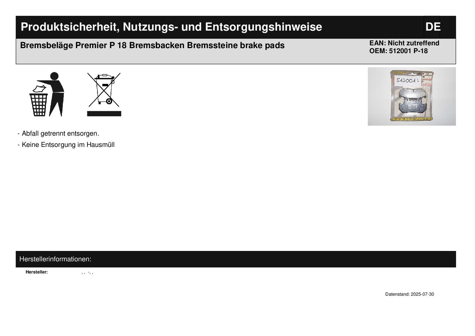 In dieser Auktion gibt es folgenden Artikel zu kaufen: Bremsbeläge (siehe Foto) Typ: P-18