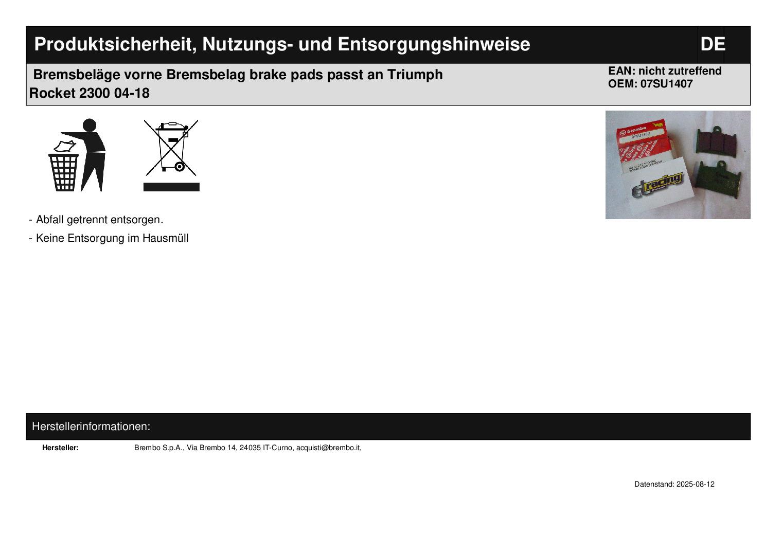In dieser Auktion gibt es folgenden Artikel zu kaufen: Bremsbeläge vorne (siehe Foto) Modell: passend für Triumph Rocket 2300 Bj.: 04 - 18 Daytona 900 Bj.: 93 - 96 Daytona 955 Bj.: 97 - 06 Lieferumfang: siehe Foto Artikelzustand: neu aus Geschäftsauflösung, mit minimalen Lagerspuren; Zustand siehe Foto Bei Unklarheiten oder Fragen bitte erst E-Mail schreiben.