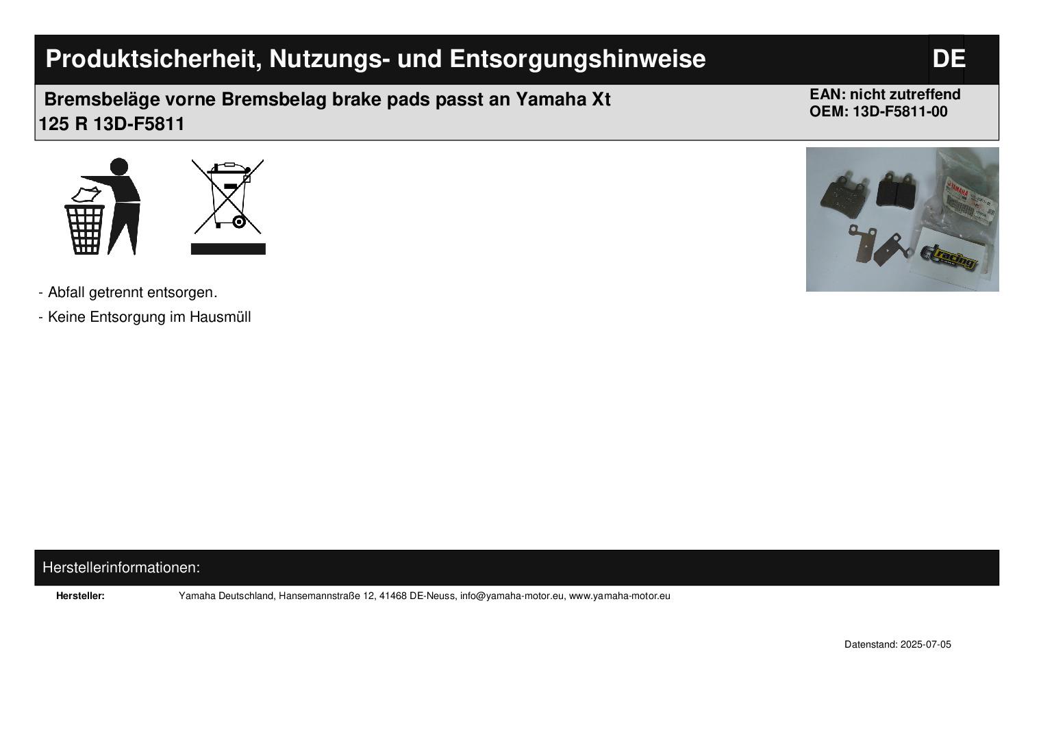 In dieser Auktion gibt es folgenden Artikel zu kaufen: Bremsbeläge vorne (siehe Foto) Modell: passend für Yamaha XT 125 R Bj.: 07 - 08 Lieferumfang: siehe Foto Artikelzustand: neu aus Geschäftsauflösung, mit minimalen Lagerspuren; Zustand siehe Foto Bei Unklarheiten oder Fragen bitte erst E-Mail schreiben.