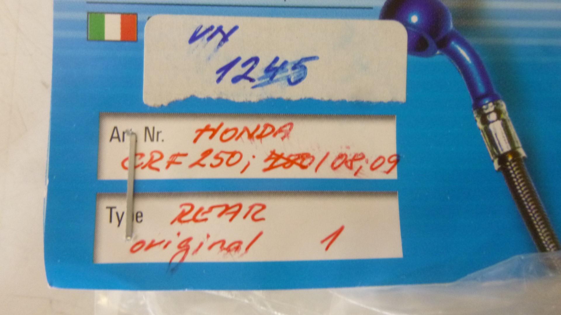 In dieser Auktion gibt es folgenden Artikel zu kaufen: Bremsleitung hinten (siehe Foto) Modell: passend für Honda CRF 250 Bj.: 08 - 09 Lieferumfang: siehe Foto Artikelzustand: neu aus Geschäftsauflösung, mit leichten Lagerspuren; Zustand siehe Foto Bei Unklarheiten oder Fragen bitte erst E-Mail schreiben.