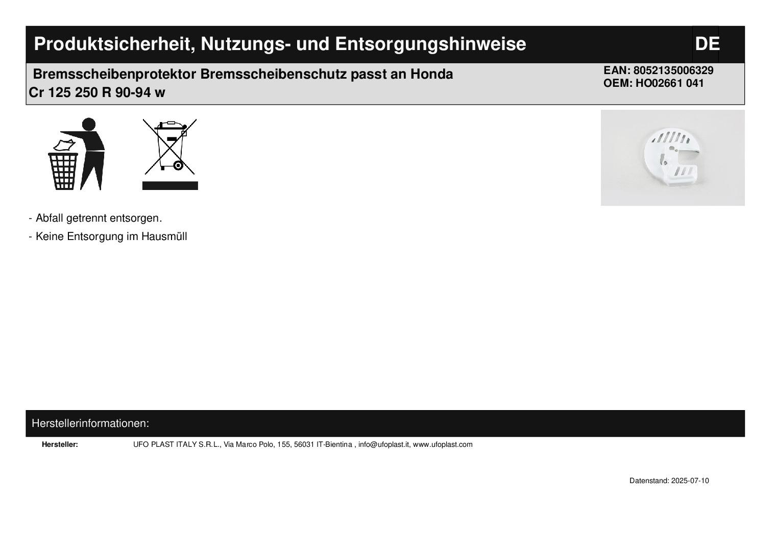 Titel: Bremsscheibenprotektor Bremsscheibenschutz passt an Honda Cr 125 250 R 90-94 w