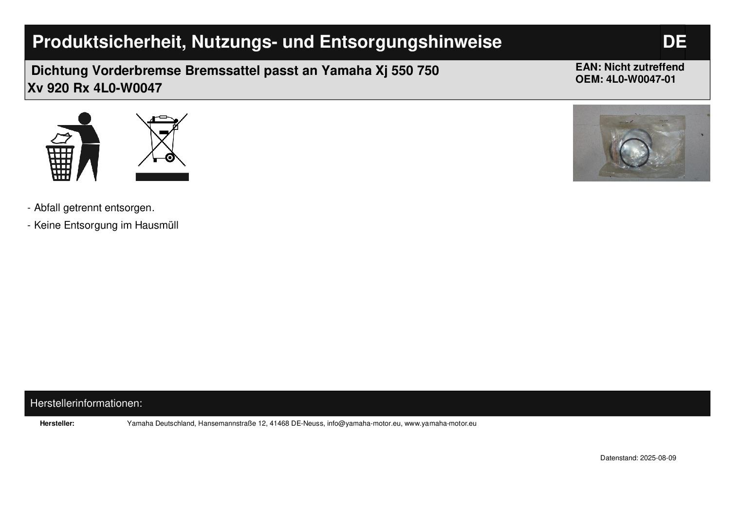In dieser Auktion gibt es folgenden Artikel zu kaufen: Bremssatteldichtung (siehe Foto) Modell: passend für Yamaha XJ 550 Bj.: 81 - 83 XJ 750 Bj.: 81 - 83 XV 920 Bj.: 82 RX 50 Bj.: 84 XS 1100 Bj.: 81 Lieferumfang: siehe Foto Artikelzustand: neu aus Geschäftsauflösung, mit leichten Lagerspuren; Zustand siehe Foto Bei Unklarheiten oder Fragen bitte erst E-Mail schreiben.